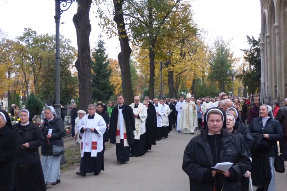 Po Nieszporach, odbyła się procesja po legnickiej nekropolii, z tradycyjną modlitwą przy pięciu stacjach. Modlitwą ogarnięci zostali: biskupi, kapłani, siostry zakonne, nauczyciele, wychowawcy, żołnierze, zesłańcy, rodzice, krewni, przyjaciele, oraz wszyscy wierni zmarli.