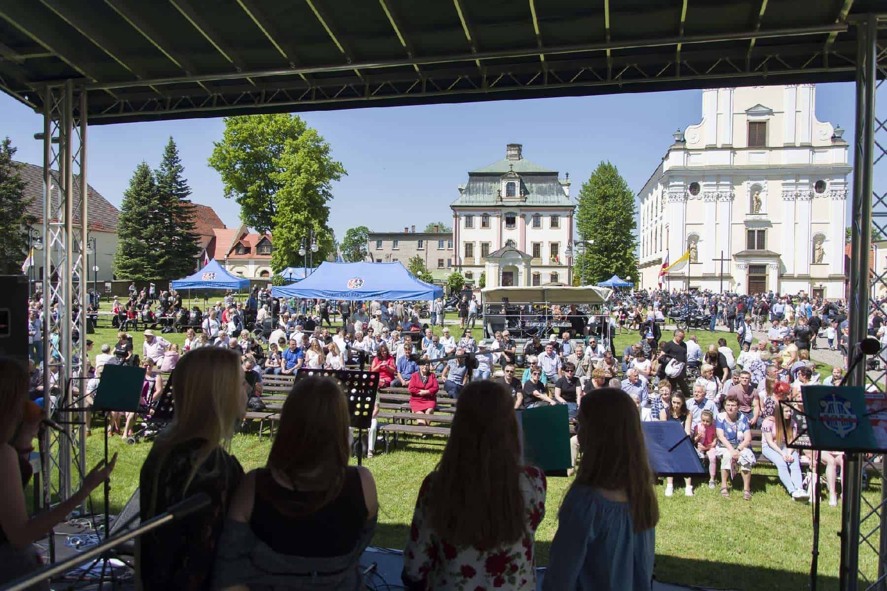 Na scenie przy bazylice odbyły się także występy zespołów, w tym zespołu Rota ze Złotoryi, który poprowadził wspólny śpiew pieśni patriotycznych.