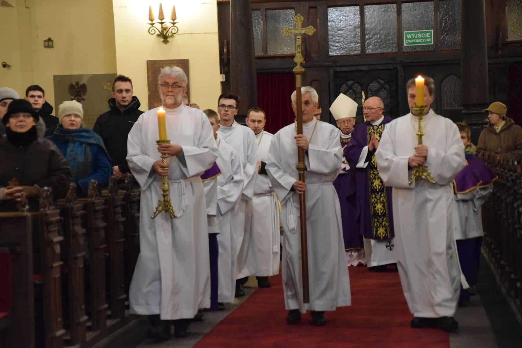 Uroczystej Mszy św. w bazylice św. Erazma i Pankracego przewodniczył JE. ks. Biskup Stefan Cichy. Poprzedziła ją Droga Krzyżowa, którą poprowadził rektor bazyliki jeleniogórskiej, ks. Bogdan Żygadło. W rozważaniach mówił o tym, że radosne dzieciństwo i urok młodości mogą zostać zniszczone przez cierpienie i krzywdę ze strony dorosłych, w tym także ze strony duchowych, co według słów Papieża Benedykta XVI „przysłoniło blask Ewangelii takim mrokiem, jakiego nie znały nawet wieki prześladowań”. Wykorzystanie niewinnych i bezbronnych, którym najbardziej ze wszystkich, należy się sprawiedliwość wyrażana miłością, opieką i poszanowaniem godności – to niesprawiedliwość wołająca o pomstę do nieba.
