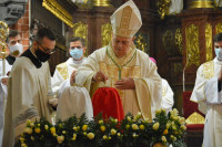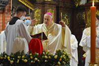 Podczas Eucharystii bp Zbigniew Kiernikowski poświęcił oleje, które są używane min. do sprawowania sakramentu chrztu, bierzmowania, święceń czy sakramentu chorych.