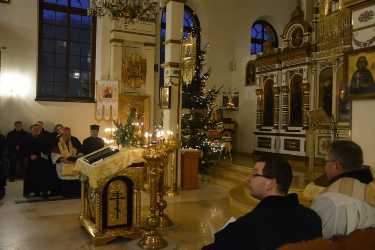 We wtorek 22 stycznia w trwającym Tygodniu Modlitw o Jedność Chrześcijan na wspólną modlitwę przybyli przedstawiciele Kościoła rzymskokatolickiego na czele z biskupem Zbigniewem Kiernikowskim i ks. Andrzejem Jarosiewiczem, delegatem biskupa legnickiego ds. ekumenizmu, a także ks. Jerzy Gansel z parafii Kościoła ewangelicko-augsburskiego oraz ks. Mirosław Drapała proboszcz parafii greckokatolickiej oraz zaproszony przez gospodarza tegorocznej modlitwy ks. Sławomir Sorokanycz z Kościoła prawosławnego. Wraz ze zgromadzonymi w cerkwi wiernymi, modlili się klerycy i przełożeni Wyższego Seminarium Duchownego, siostry zakonne oraz księża dziekani legnickich dekanatów.
