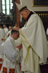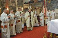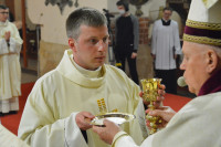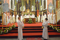 - Przez święcenia w sposób szczególny stajecie się sługami, przyjaciółmi Jezusa, jesteście wtajemniczeni, upoważnieni do sprawowania bożych tajemnic, by służyć ludowi bożemu w niesieniu światła płynącego z pasji Jezusa Chrystusa, z Jego męki, śmierci i zmartwychwstania – podkreślił w homilii mszalnej Biskup legnicki. - Bądźcie czujni, miejcie właściwe zainteresowania, właściwe ukierunkowanie, czyli zanurzenie w tajemnicy Jezusa Chrystusa, aby nie szukać własnego interesu, ale pełnić wolę Boga – mówił.