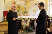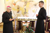 W środę 25 maja br. dwaj tegoroczni prezbiterzy, ks. Artur Jaguszczak i ks. Krzysztof Borysiewicz, spotkali się z biskupem legnickim Andrzejem Siemieniewskim. Ten wręczył im dekrety kierujące ich na wybrane parafie.