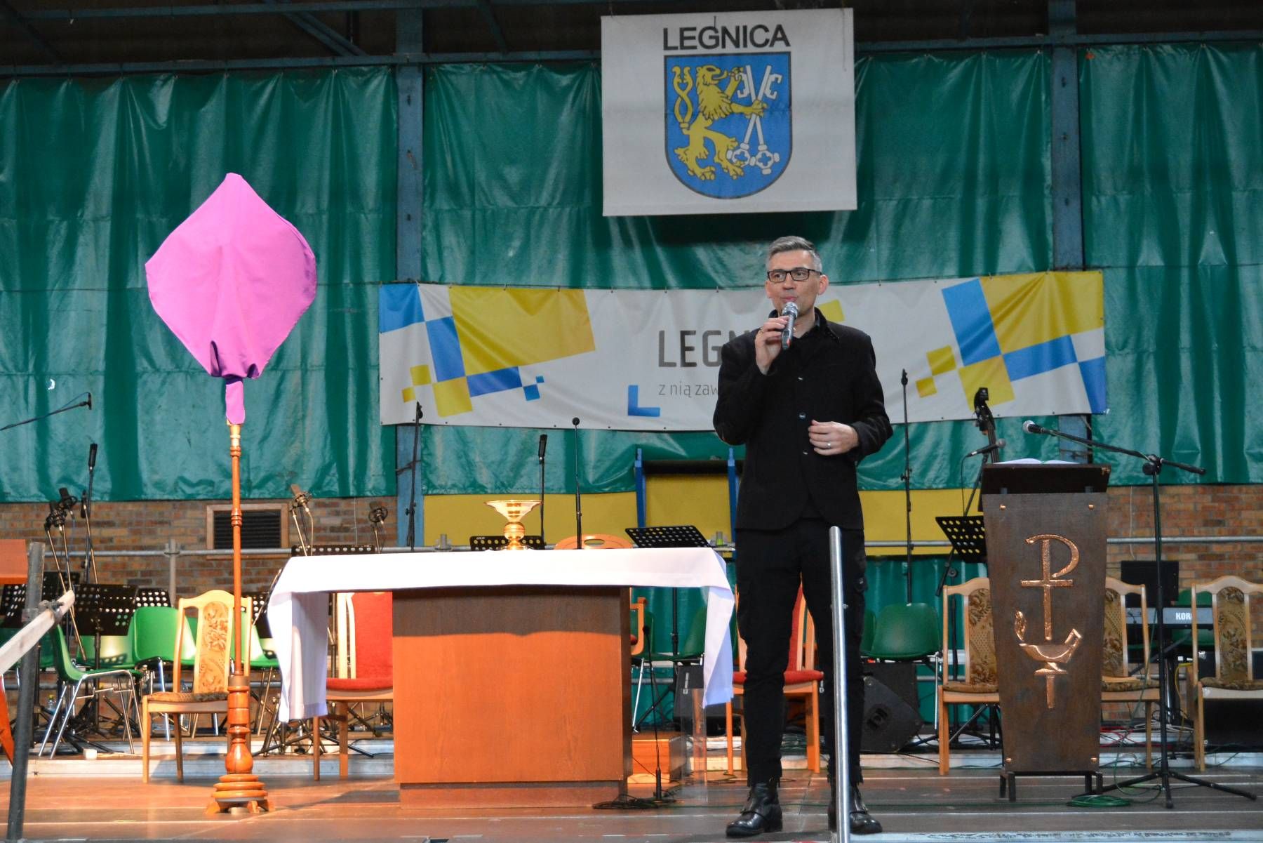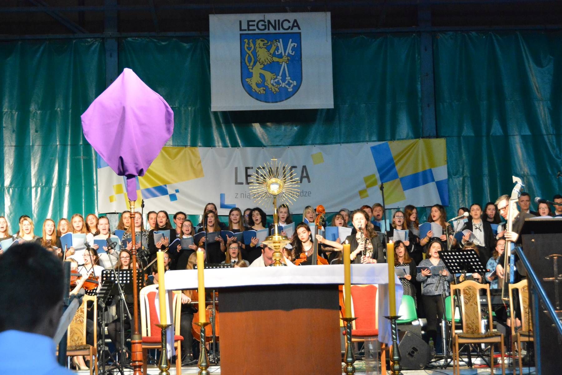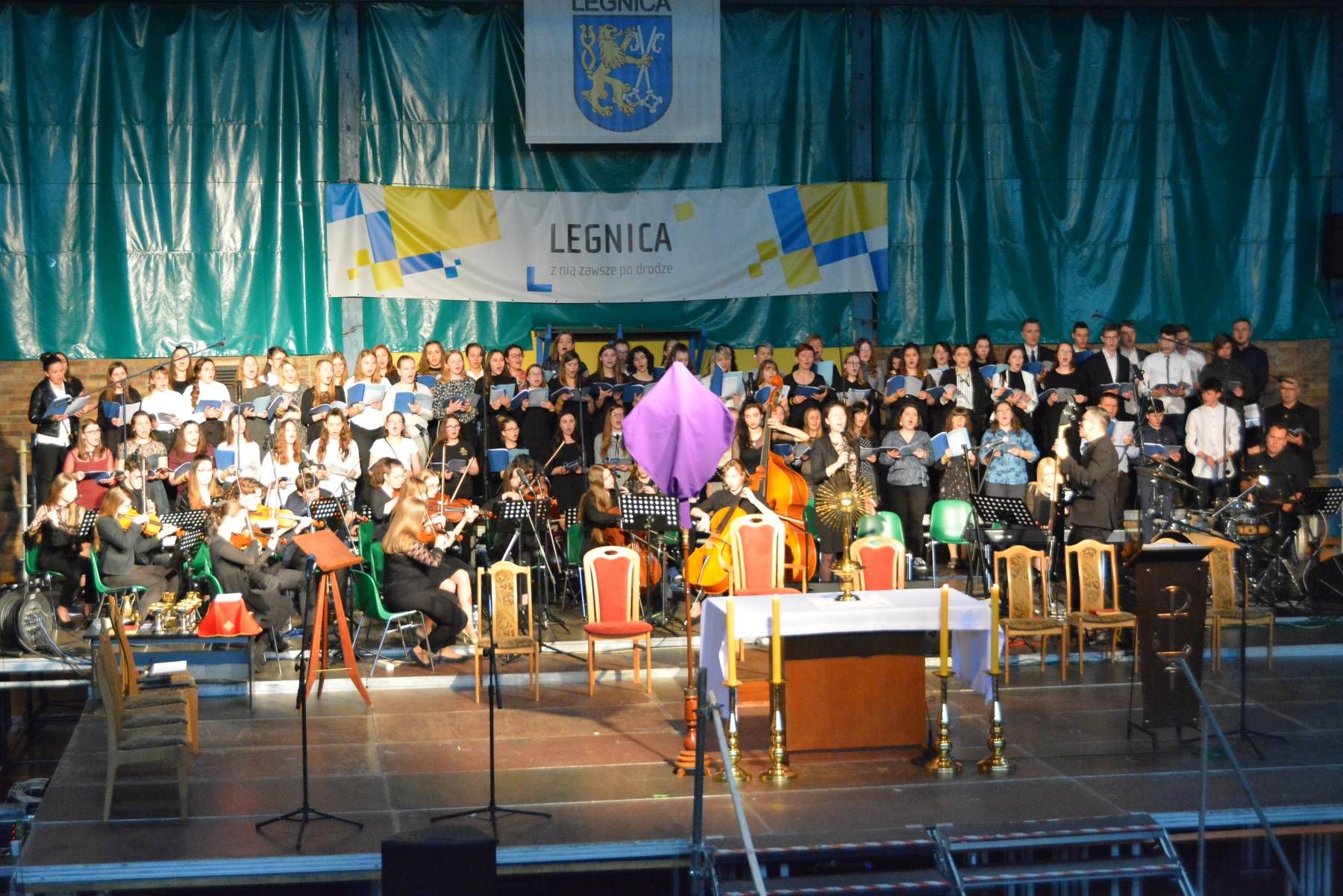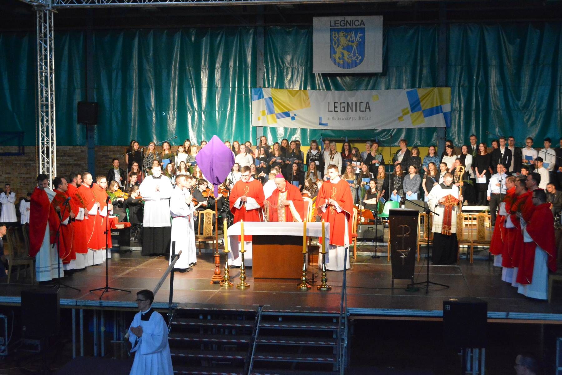 W Niedzielę Palmową już po raz kolejny odbyło się spotkanie młodych diecezji legnickiej. W sali Ośrodka Sportu i Rekreacji w Legnicy spotkało się blisko 400 osób, by wspólnie się modlić, śpiewać, słuchać muzyki, świadectw i uczestniczyć w Eucharystii. Świadectwem wiary z młodymi podzielił się krakowski muzyk Hubert Kowalski, który wraz z Pawłem Bębenkiem prowadzili warsztaty muzyczne. Na scenie wystąpiło blisko 100 młodych chórzystów i muzyków, którzy towarzyszyli młodym w modlitwie uwielbienia. O g. 18 Eucharystii przewodniczył biskup legnicki Zbigniew Kiernikowski.