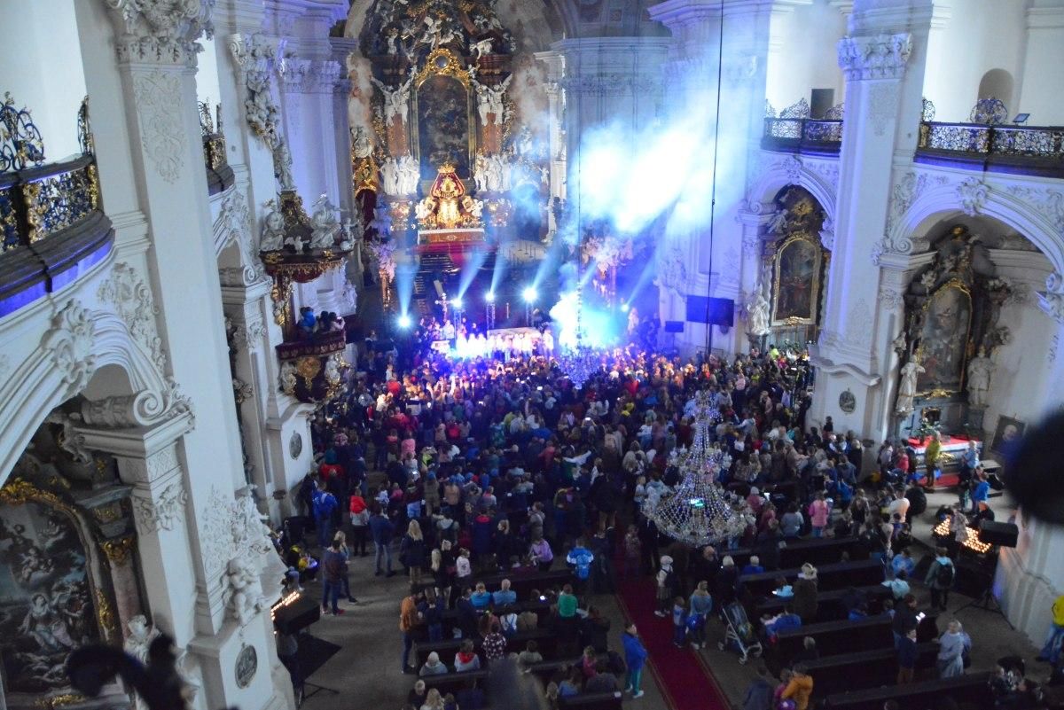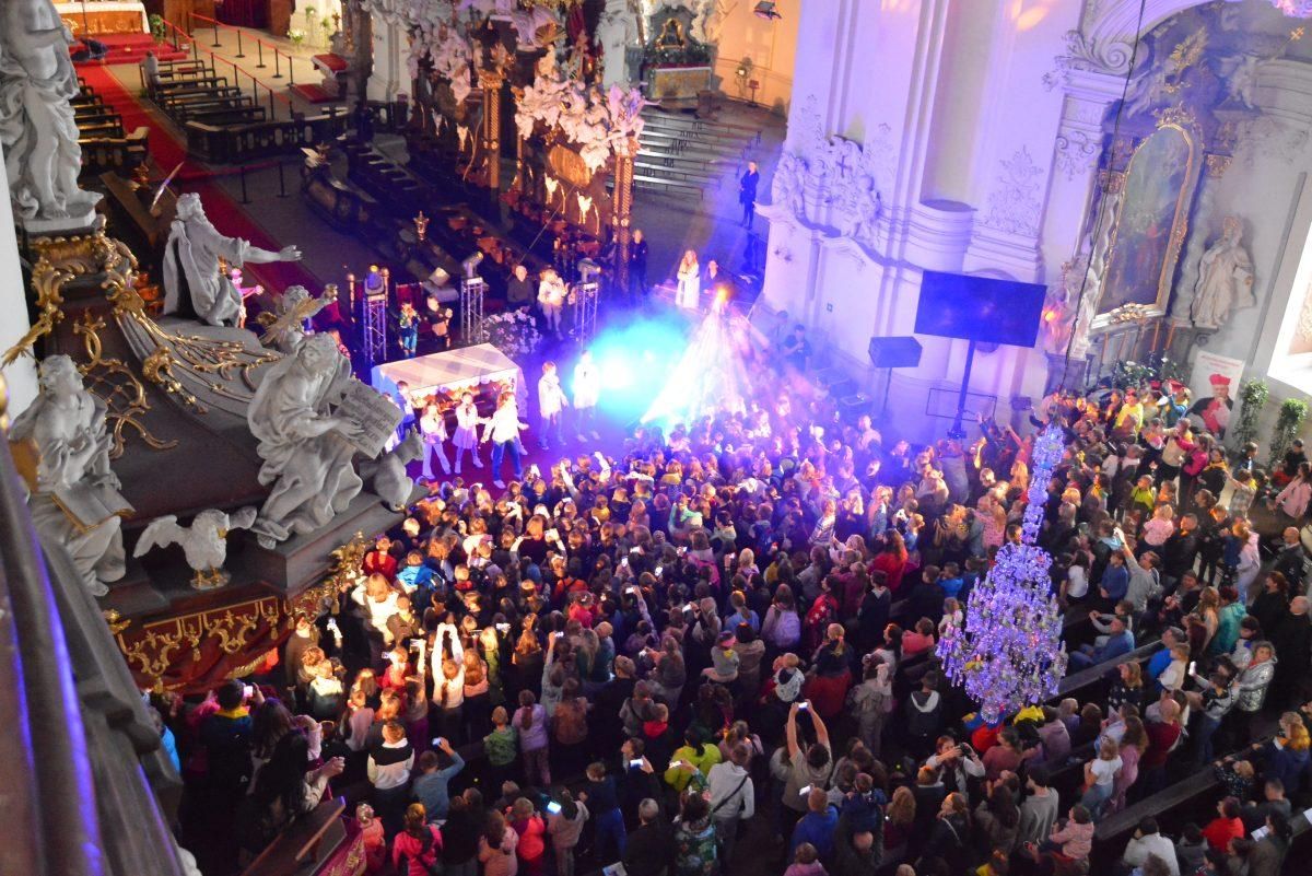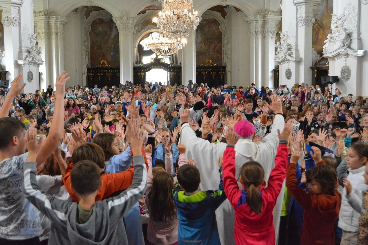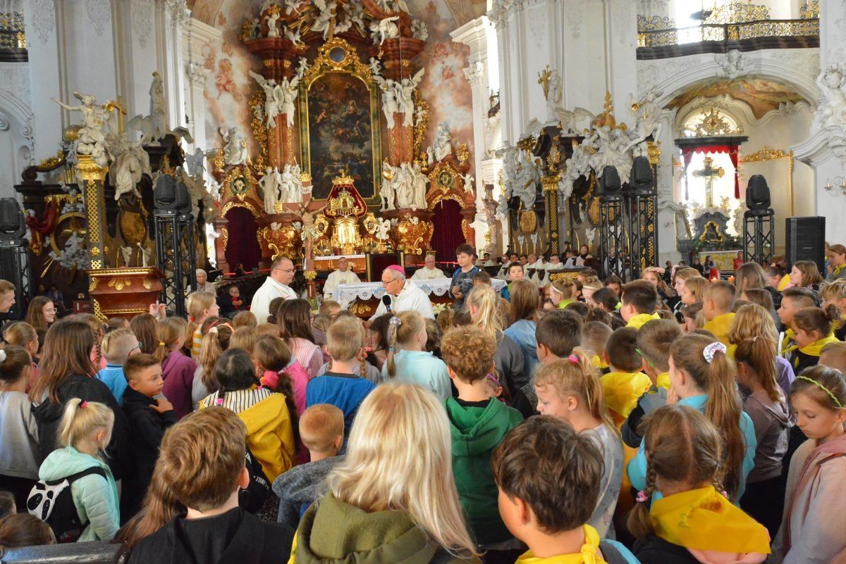 Takiej pielgrzymki w Krzeszowie jeszcze nie było! W drugą sobotę października na pielgrzymkę do Matki Bożej Łaskawej przybyły dzieci z całej diecezji. Blisko 1500 osób, w tym opiekunowie, duszpasterze, katecheci! Przy pięknej pogodzie nikt się nie nudził. Była gra terenowa, zajęcia w akademii Einsteina, zabawy na dmuchańcach, stoiska ze słodkościami. Przed godziną 11 dzieci wraz z ojcem z Radia Maryja i Magdą Buczek odmówiły różaniec, a po nim Mszy św. z kazaniem przewodniczył biskup Antoni Długosz, który po Eucharystii śpiewał z dziećmi piosenki religijne.