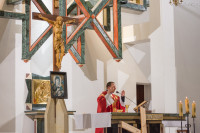 Było to pierwsze tego typu nabożeństwo zorganizowane przez parafię i ks. proboszcza Andrzeja Gidzińskiego. Rozpoczęliśmy od Mszy św., w trakcie której ks. Andrzej służył wiernym w konfesjonale. Eucharystii przewodniczył wikary ks. Łukasz Klimek, który był także obecny podczas całego marszu.
