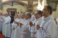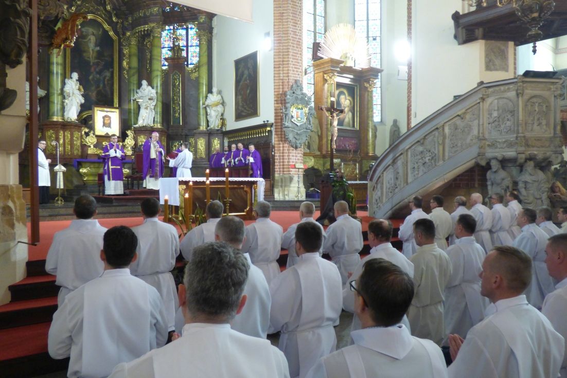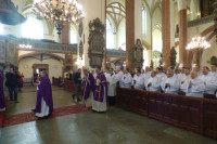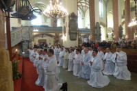 W homilii, Biskup legnicki nawiązał do odczytywanego dnia Słowa Bożego. - Będziecie mogli posługiwać tajemnicy Komunii, zanosząc postać chleba, czy też w pewnych okolicznościach podając kielich z tą tajemnicą Jezusa Chrystusa, który przyjął na siebie wszelki ludzki grzech i mimo tego, że nie popełnił żadnego błędu, grzechu, niewierności, utożsamił się z tym marnotrawnym synem. Wraca nie sam, ale razem z tymi którzy wierzą w Niego. Będziecie posługiwać tej tajemnicy, zanosząc te postacie. Życzę byście posługując tej Tajemnicy, sami dobrze, mocno i głęboko odkrywali prawdę, że mimo wysiłku żeby być dobrym, porządnym, wszyscy nosimy w sobie tę wielką skazę syna marnotrawnego – mówił bp Kiernikowski.