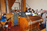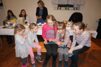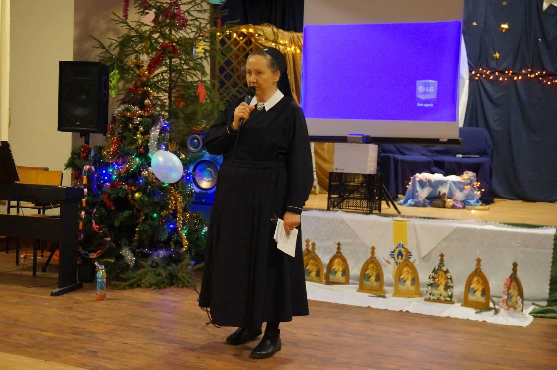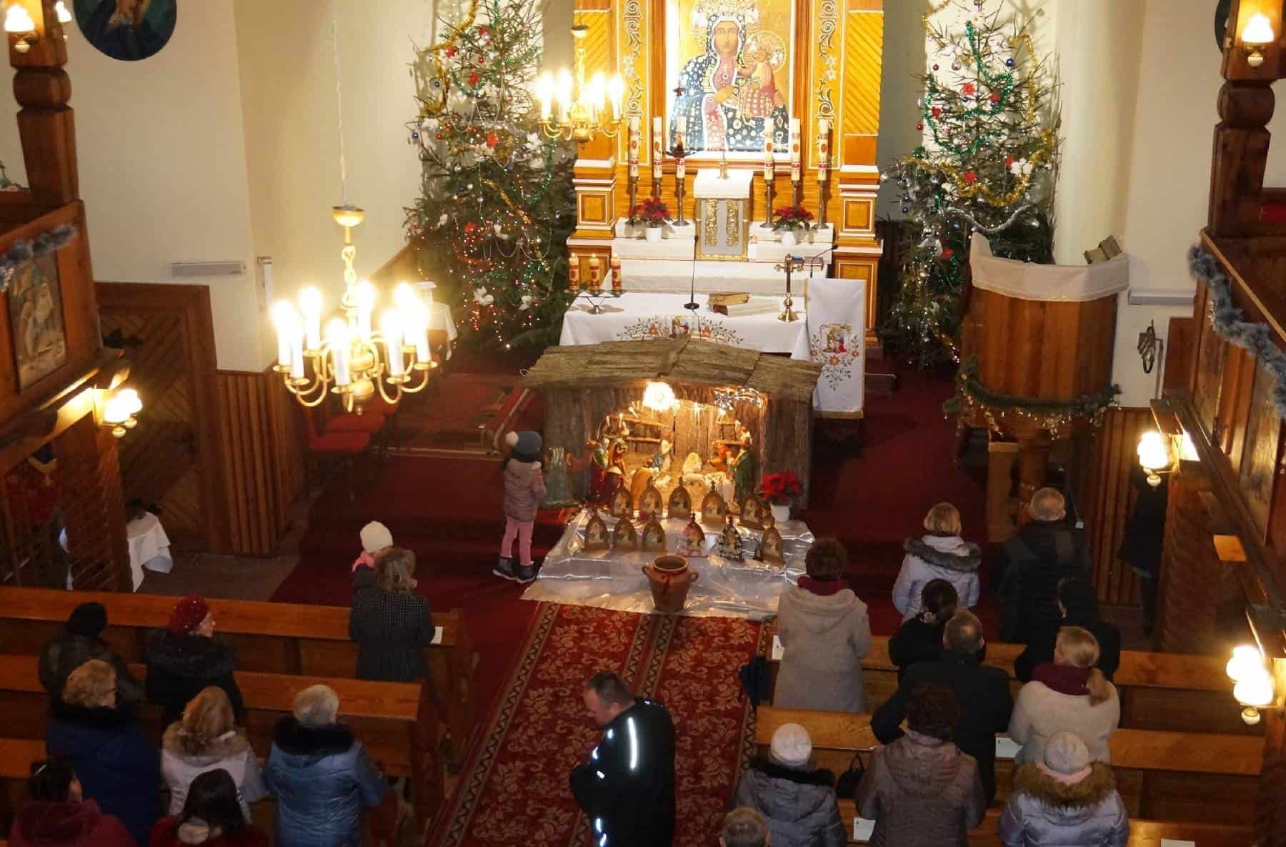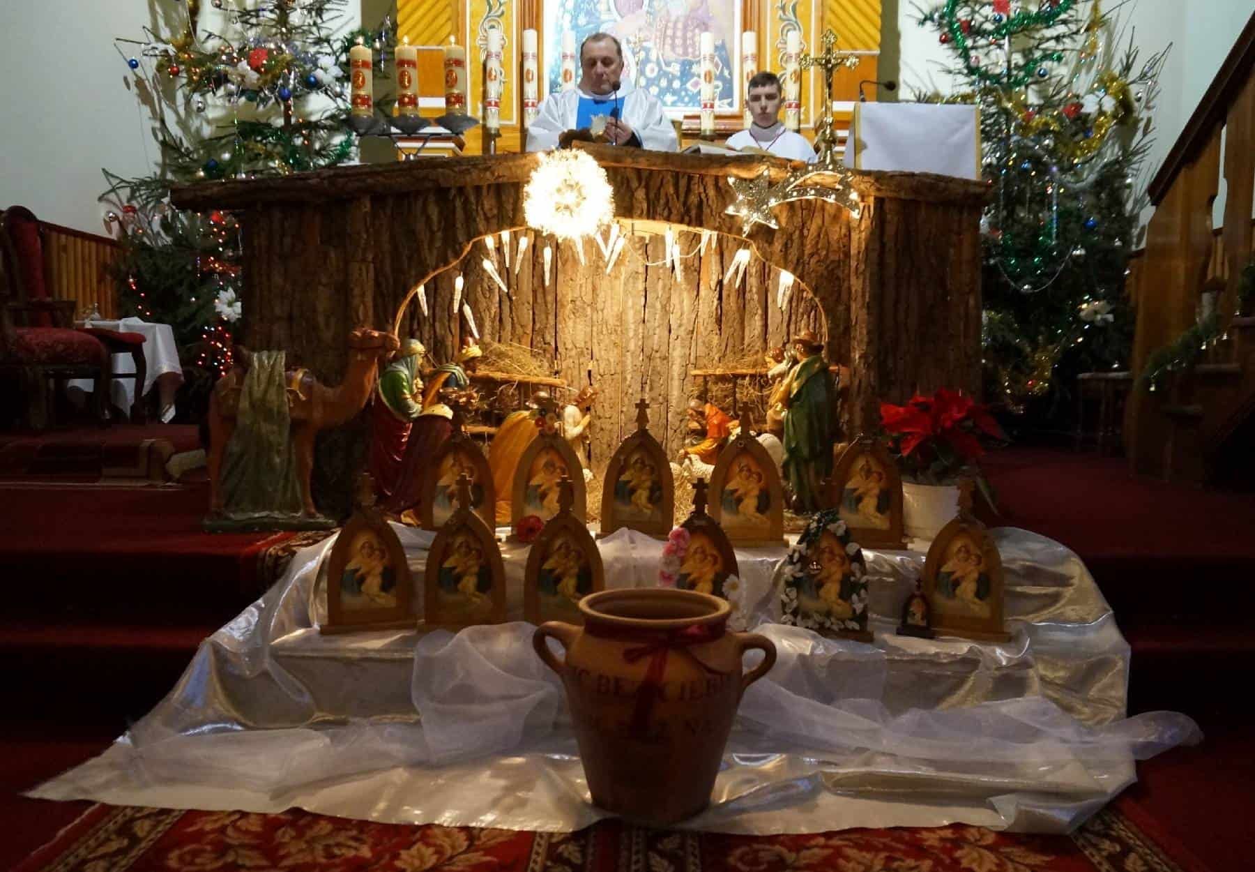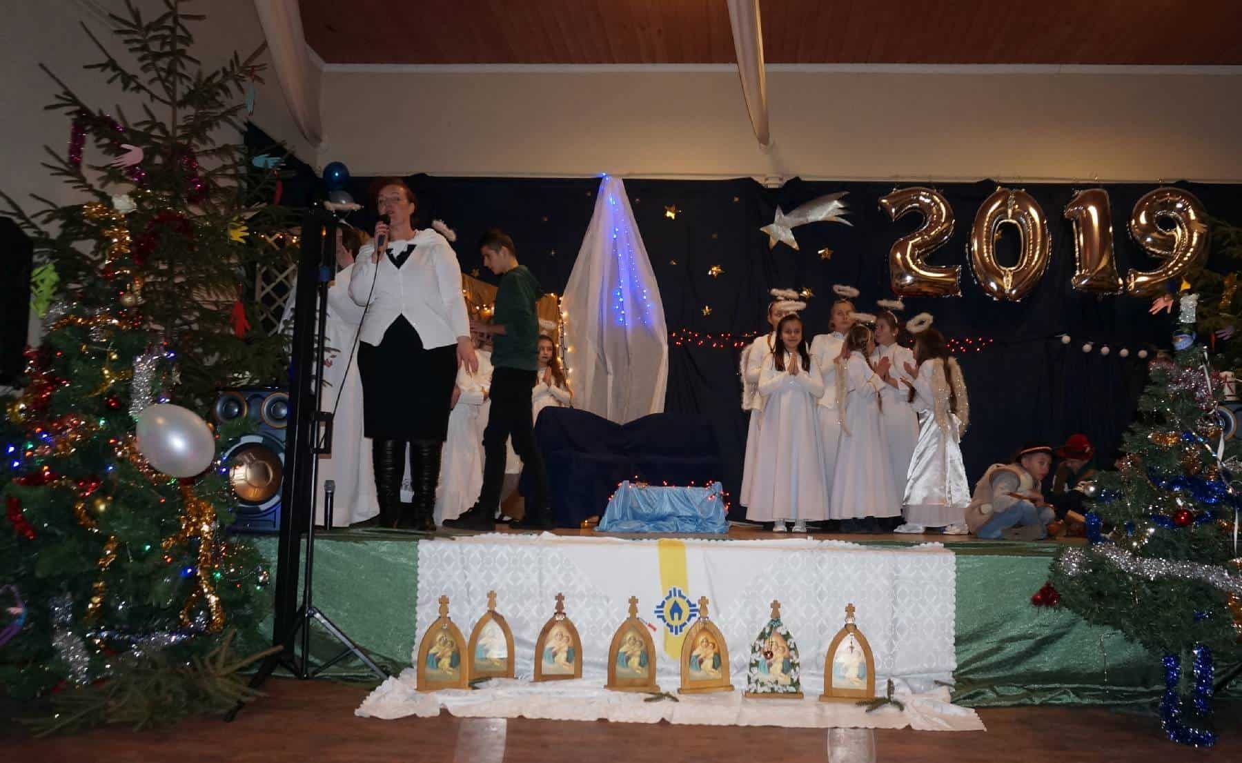 W kościele oczekiwała na nas schola parafialna, prowadzona przez Monikę Wąsowską. Młodzi, pięknym śpiewem wspierali nas w uwielbieniu Syna Bożego i wpatrywaniu się w świętą Rodzinę. Pouczeni Słowem Bożym, homilią na temat znaczenia rodziny i wychowawczej roli Maryi, a także posileni chlebem eucharystycznym udaliśmy się do świetlicy wiejskiej na jasełka, przygotowane przez nauczycieli i uczniów ze szkoły podstawowej ze Starego Łomu oraz na nasze rodzinne spotkanie przy stole.