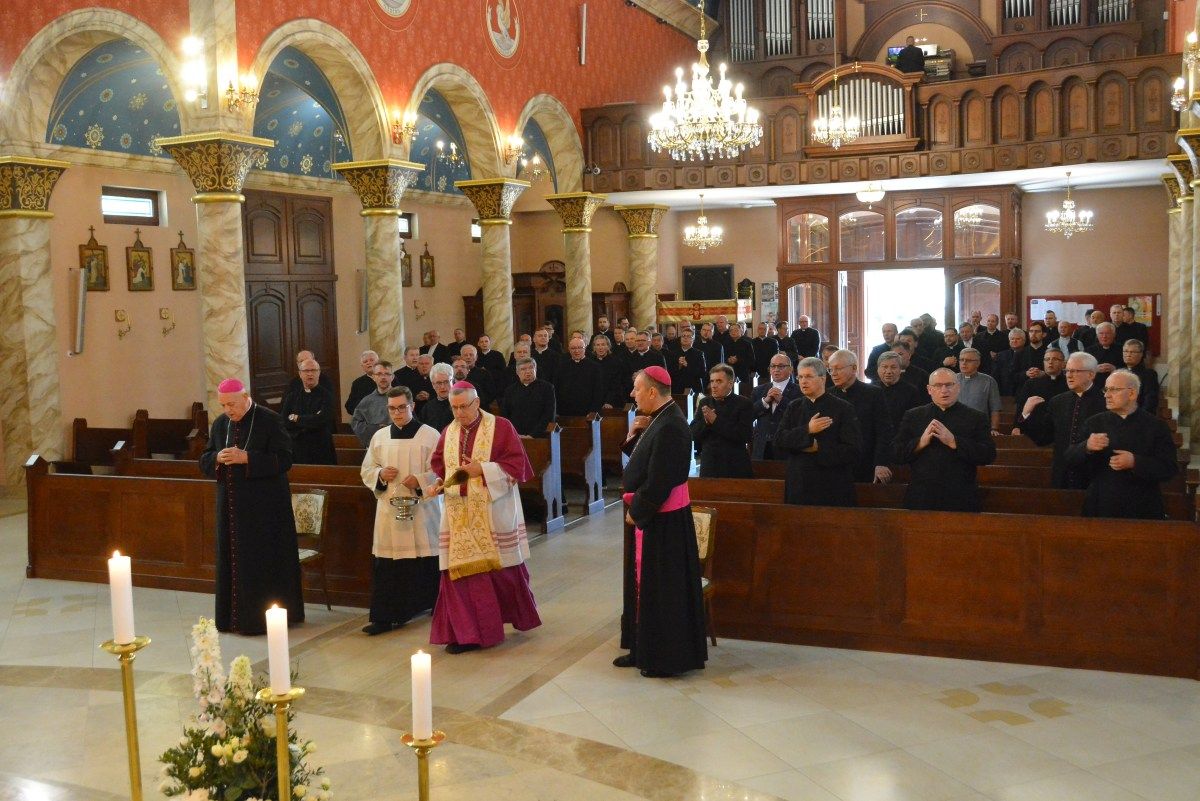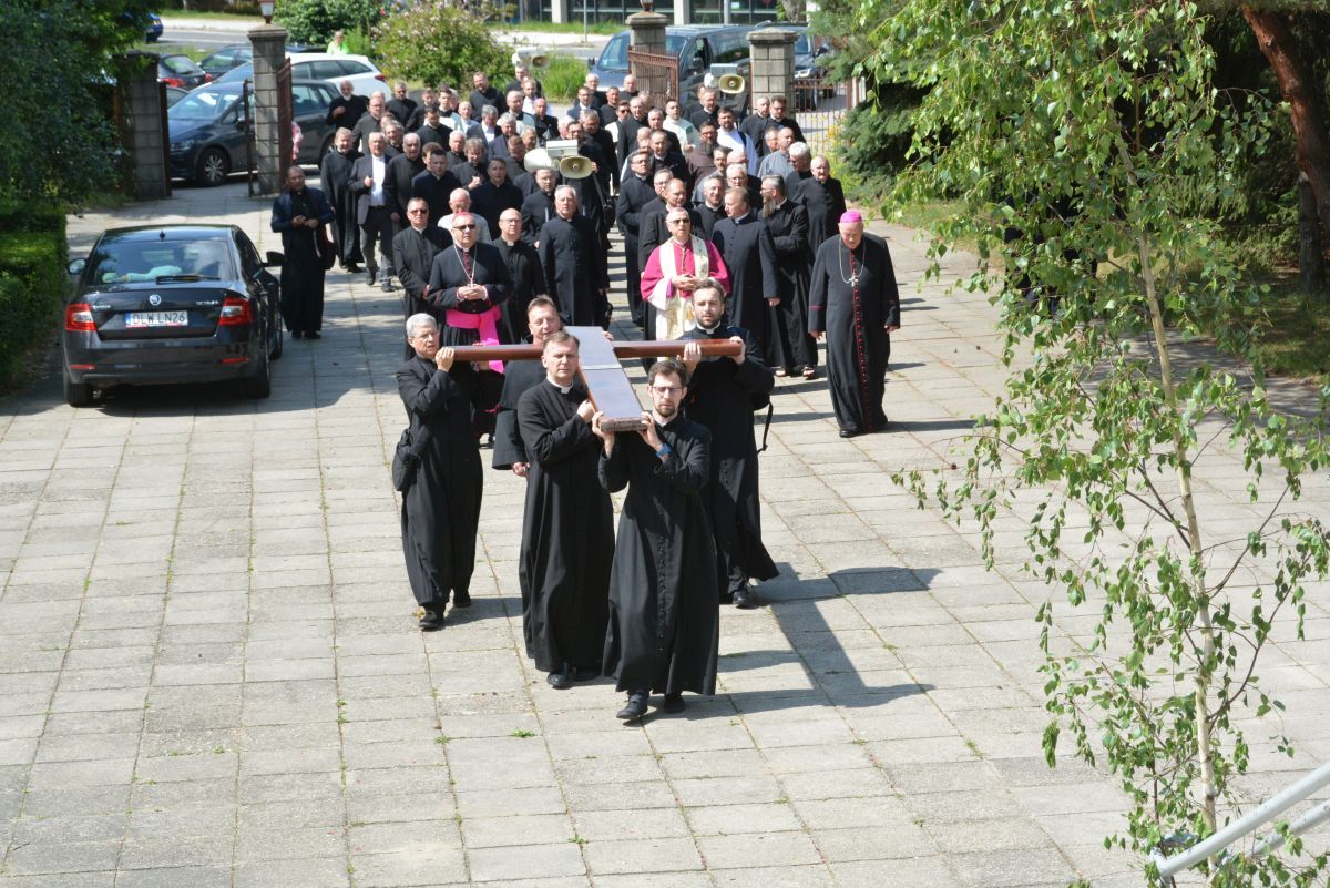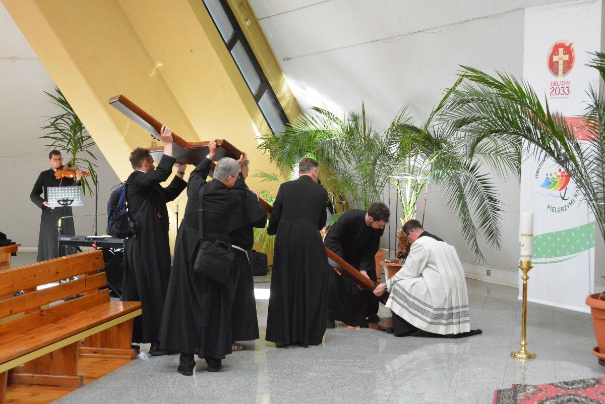 Biskupi, księża, diakoni oraz klerycy zgromadzili się w koście św. Jadwigi, gdzie biskup legnicki Andrzej Siemieniewski udzielił zgromadzonym błogosławieństwa na drogę.