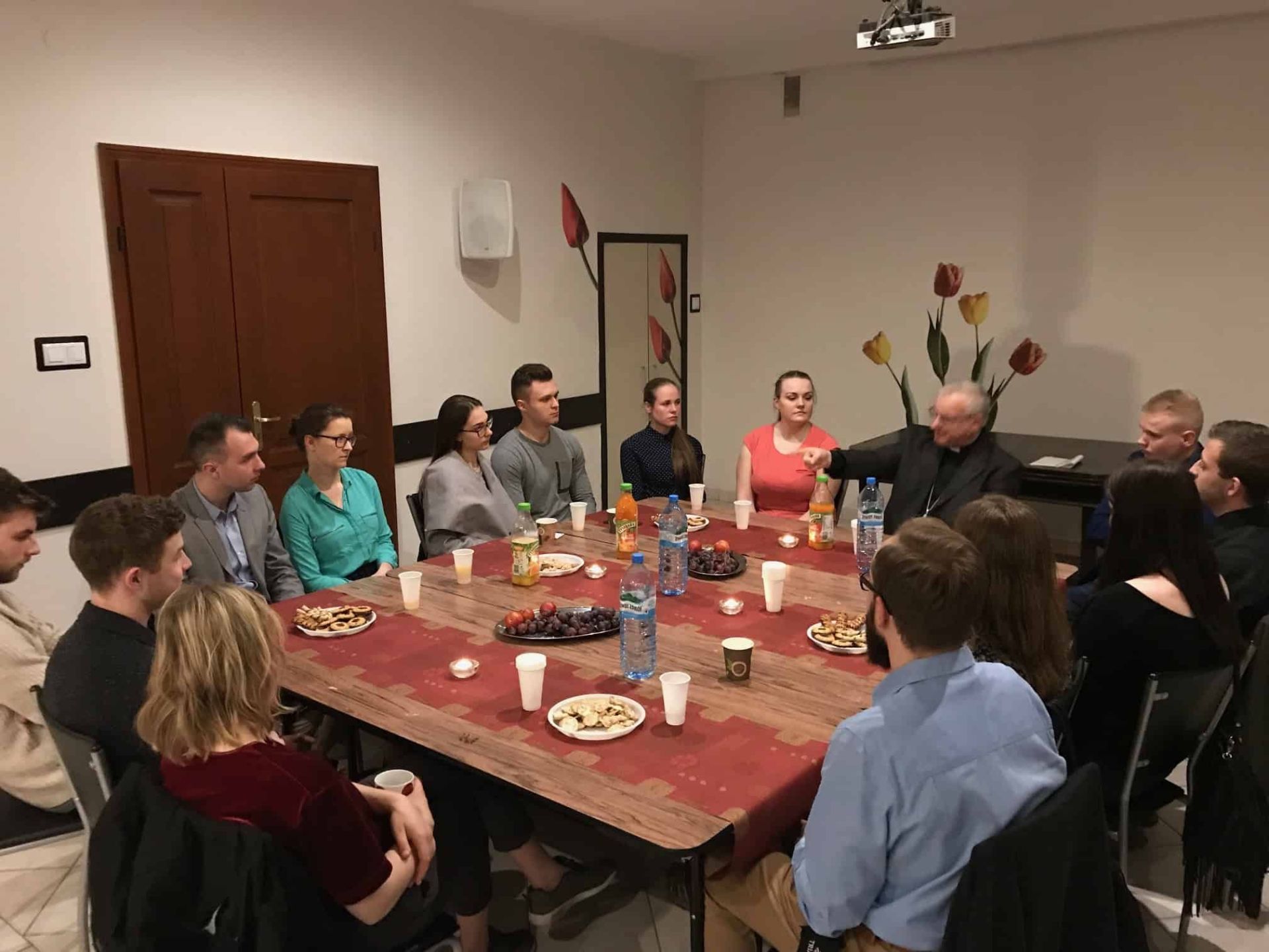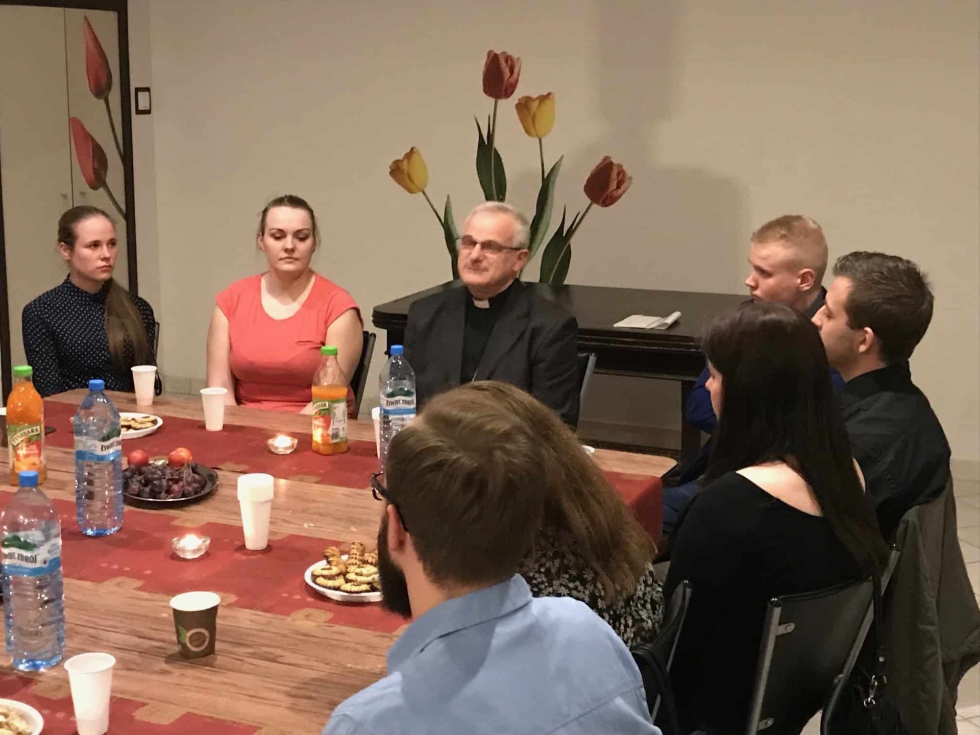Na zakończenie studenci podziękowali Księdzu Biskupowi oraz złożyli życzenia z okazji zbliżającego się dnia patronalnego.
