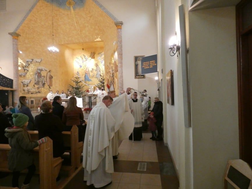 - Tworzymy dziś wspólnotę która się modli, na wzór Świętej Rodziny. Do tego, by Bóg mógł przyjść i stać się człowiekiem, potrzebował odpowiedniego środowiska – rodziny. Kościół zwraca na to uwagę i stawia prze naszymi oczyma Świętą Rodzinę jako wzór, byśmy my, ludzie, stworzeni na obraz i podobieństwo Boga, też umieli przeżywać właściwie wszystkie nasze relacje wokół tego co jest najważniejsze: Wcielone Słowo, Jezus Chrystus, Bóg- Człowiek. W ten patronalny dzień parafii, modlimy się za całą wspólnotę, za wszystkich dobroczyńców, wszystkich którzy troszczą się o to, żeby ten dom, był miejscem gromadzenia się rodziny parafialnej – mówił ksiądz Biskup.