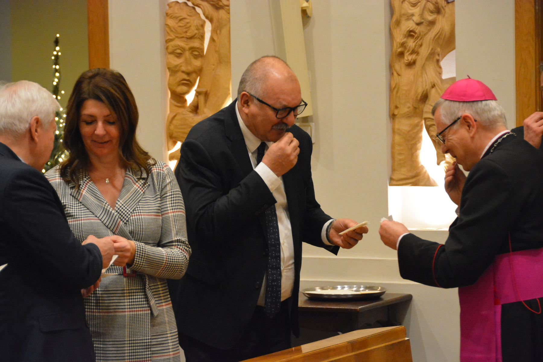 We wtorek 10 stycznia w Domu Słowa w Legnicy odbyło się spotkanie opłatkowo-noworoczne, na które biskup legnicki Andrzej Siemieniewski zaprosił samorządowców z terenu diecezji legnickiej. Ponad 100 osób - prezydentów, burmistrzów, wójtów, radnych reprezentujących różne samorządy lokalne przybyło do kaplicy Domu Słowa. Obecny był także marszałek województwa dolnośląskiego Cezary Przybylski oraz radni sejmiku dolnośląskiego. Był czas na składanie życzeń, łamanie się opłatkiem i spotkanie przy stole, podczas którego dzielono się doświadczeniami. Spotkanie połączyło ludzi rożnych opcji politycznych, dla których jednak wspólne są wartości oraz praca na rzecz dobra wspólnego społeczności lokalnych.
