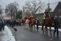 Obchody uroczystości Objawienia Pańskiego w parafii św. Andrzeja Ap. w Męcince tradycyjnie połączone były z Orszakiem Trzech Króli. Po Mszy św. o godz. 12.00 barwny korowód wyruszył z kościoła do szkolnego amfiteatru. Prowadzili go Trzej Królowie jadący konno. Po dojściu do szkoły uczniowie pod kierunkiem Niny Wiktorowskiej i Edyty Drąg zaprezentowali jasełka. W tym roku w przedstawieniu wystąpiły także osoby dorosłe. Po występie każdy z uczestników mógł skorzystać z przygotowanego posiłku, m. in. bigosu, gorącej zupy czy też barszczu z pasztecikiem. Przy wydawaniu posiłku zaangażowała się Straż Pożarna. Na zakończenie dzieci mogły przejechać się na koniach, którymi przybyli królowie. Składamy serdeczne podziękowanie pani katechetce Wiesławie Kostrzewie oraz Urzędowi Gminy Męcinka i Szkołom za pomoc w organizacji tego wydarzenia.