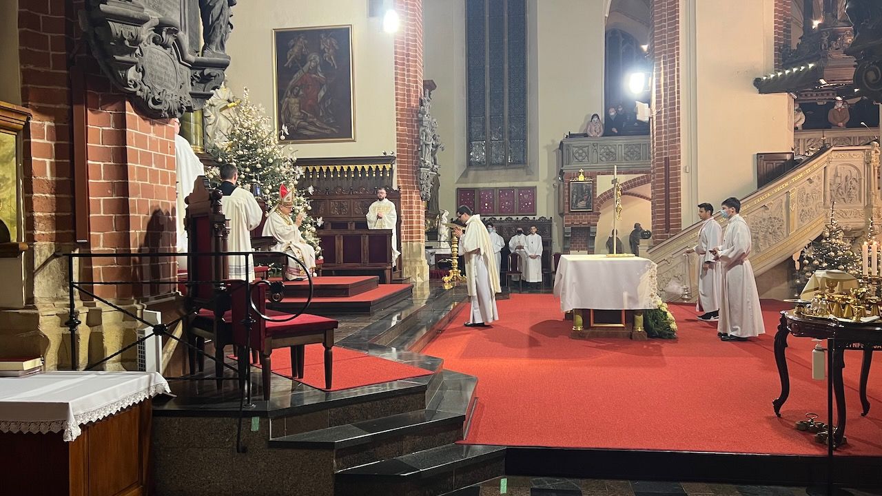 Pasterce o godz. 22.00 w Katedrze Legnickiej pw. Świętych Apostołów Piotra i Pawła przewodniczył Biskup Legnicki Andrzej Siemieniewski, który podczas homilii podkreślał, że od momentu tej Świętej Nocy Bóg nieustannie pragnie przywracać nam duchowy wzrok i słuch, który straciliśmy poprzez grzech. Na zakończenie Eucharystii Biskup Andrzej złożył życzenia świąteczne:
