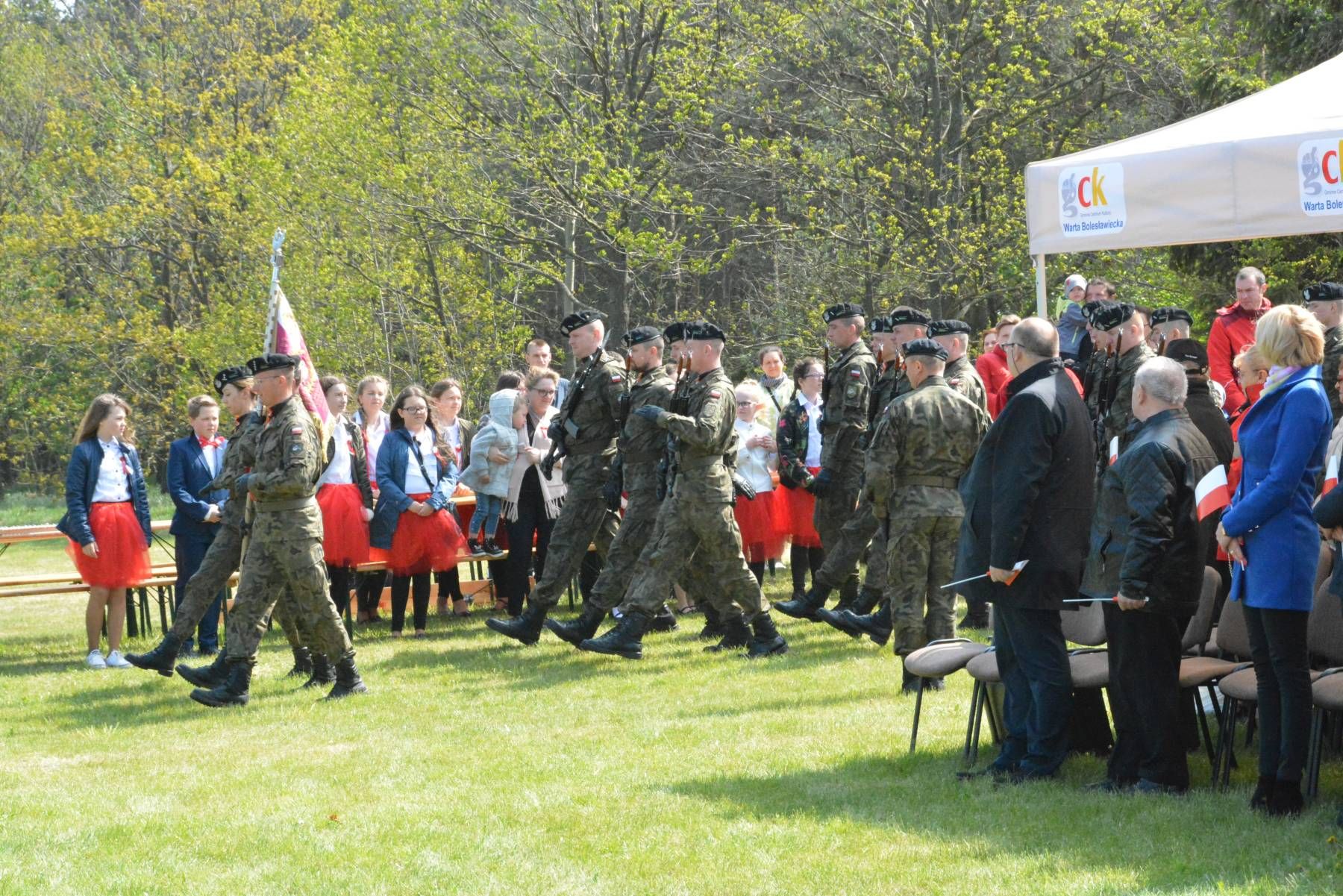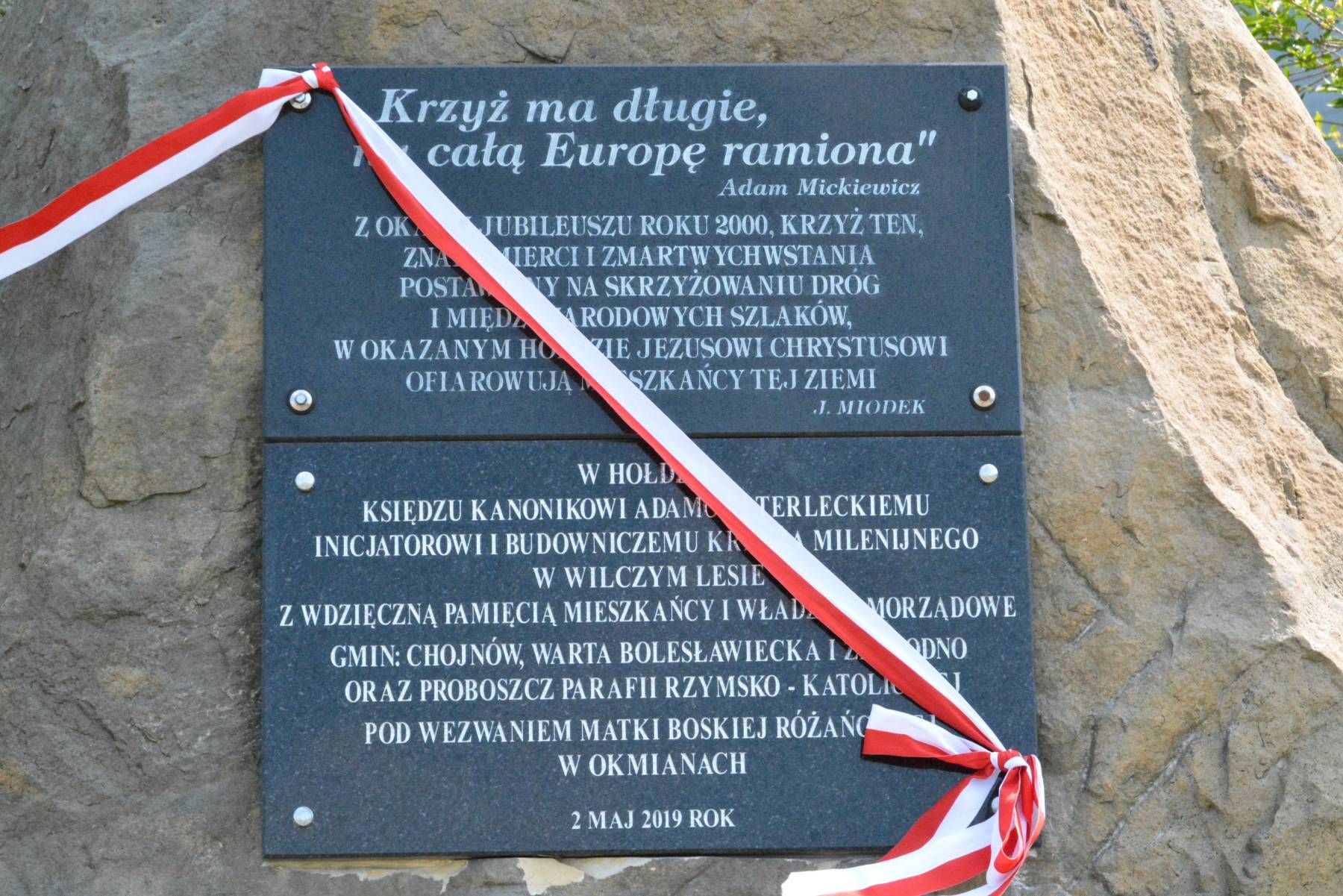 Już po raz 15. 2 maja, w Święto Flagi, w Wilczym Lesie przy Krzyżu Milenijnym odbył się Festiwal Piosenki patriotycznej i religijnej. To wspólne dzieło trzech gmin - Chojnów, Warta Bolesławiecka i Zagrodno oraz parafii w Okmianach. Inicjatorem tego wydarzenia był ks. Adam Terlecki, nieżyjący już proboszcz parafii w Okmianach. Jego dzieło podjął nowy proboszcz ks. Przemysław Durkalec, który wspierany przez władze lokalne troszczy się o to, by łączyć ludzi wokół wartości patriotycznych i religijnych. W spotkaniu w Wilczym Lesie uczestniczyli nie tylko włodarze gmin, ale też parlamentarzyści, posłowie i senatorowie, przedstawiciele szkół, Związku Strzeleckiego z Chojnowa, mieszkańcy okolicznych miejscowości. Uroczystość uświetniła kompania honorowa z 10. Brygady Kawalerii Pancernej ze Świętoszowa, przedstawiciele służb mundurowych. Na rozpoczęcie spotkania odsłonięto i poświęcono tablicę pamiątkową ufundowaną w hołdzie księdzu Adamowi Terleckiemu. Odśpiewano też litanię Loretańską. Kolejnym punktem było odśpiewanie hymnu i apel poległych zakończony salwą honorową. Część festiwalową rozpoczął koncert orkiestry dętej Piotra Koziara, następnie rozpoczęły się zmagania festiwalowe. Każdy z zespołów wykonał jeden utwór religijny i jeden patriotyczny. Na scenie zaprezentowało się 6 zespołów dziecięcych i 14 zespołów folklorystycznych.