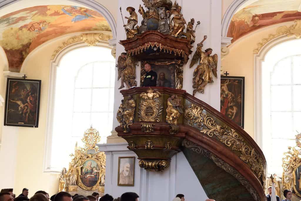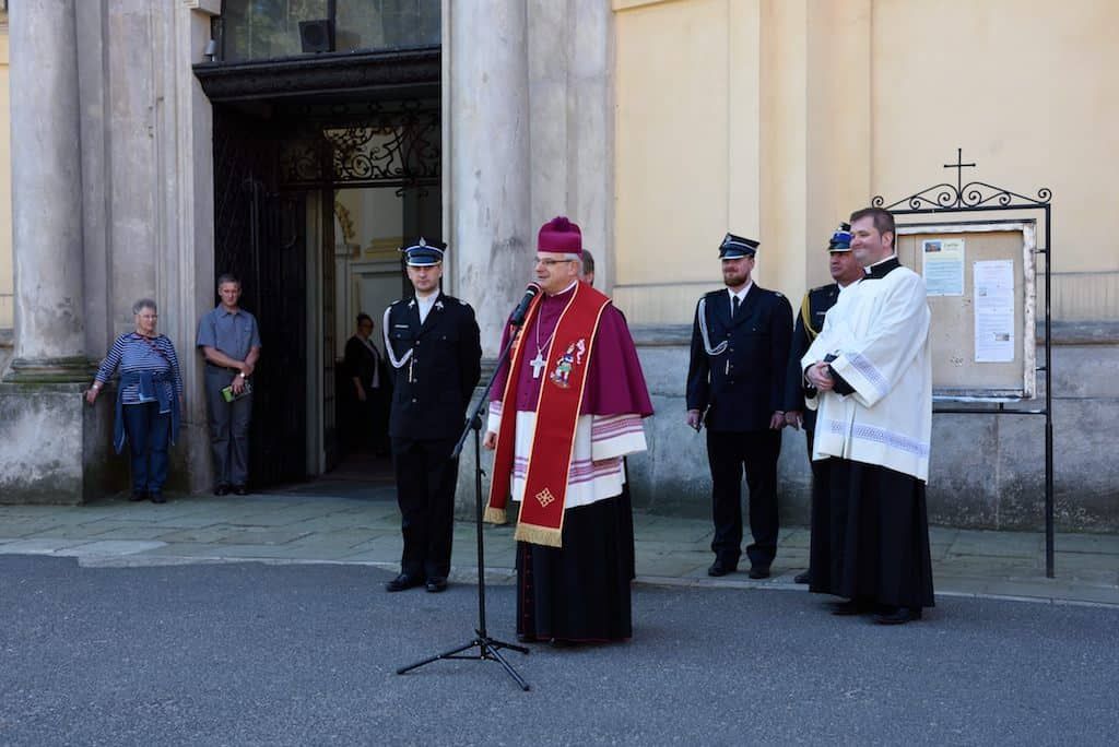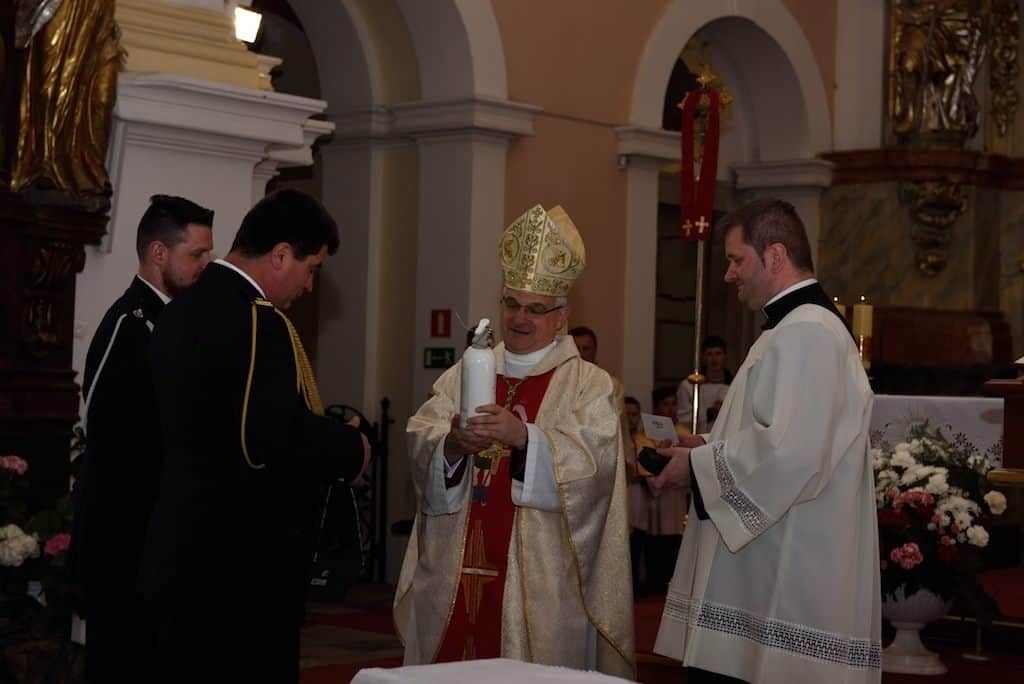 W Słowie Bożym Ksiądz Biskup m.in. podkreślił, że strażacy służą wszystkim bez wyjątku i wg badań cieszą się 87% zaufaniem społeczeństwa, a co do ich pracy nikt nigdy nie zgłaszał zastrzeżeń. Nie bez znaczenia jest przyzywanie św. Floriana – rzymskiego legionisty, który postawił Chrystusa w centrum swojego życia. Bp Marek podkreślił także rolę żon strażaków, które cierpliwie i wyrozumiale wspierają swoich mężów w służbie „Bogu na chwałę i ludziom na pożytek”. Życzył strażakom, aby zawsze gasili pożary, ale nigdy nie gasili ducha.