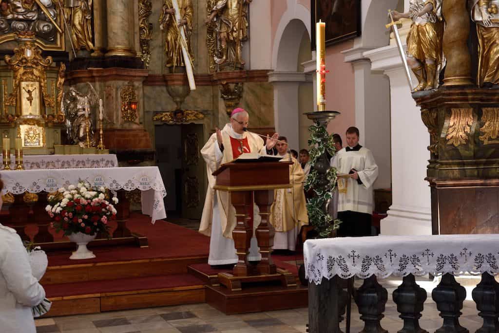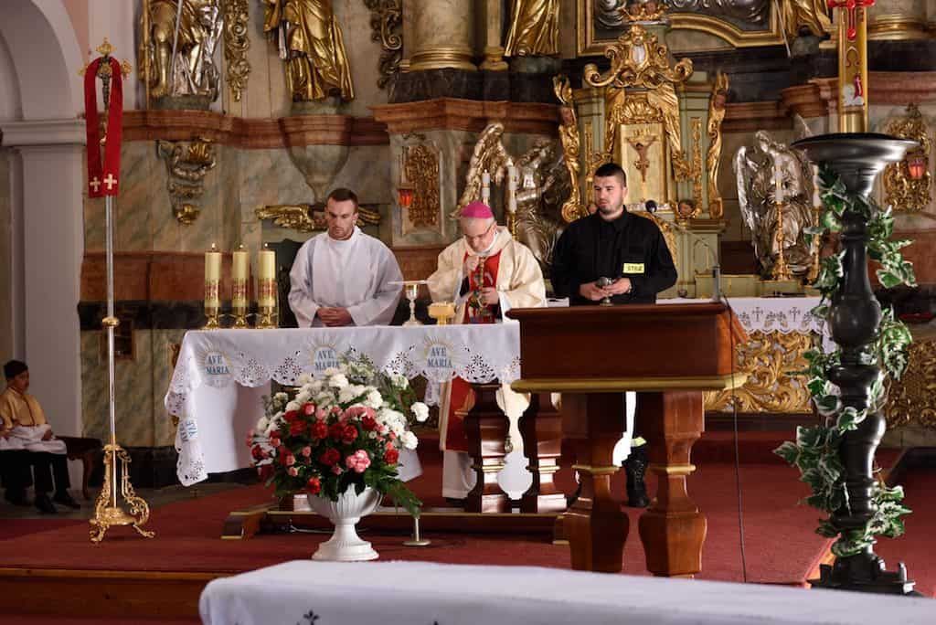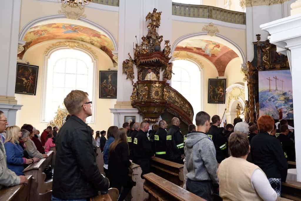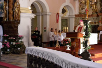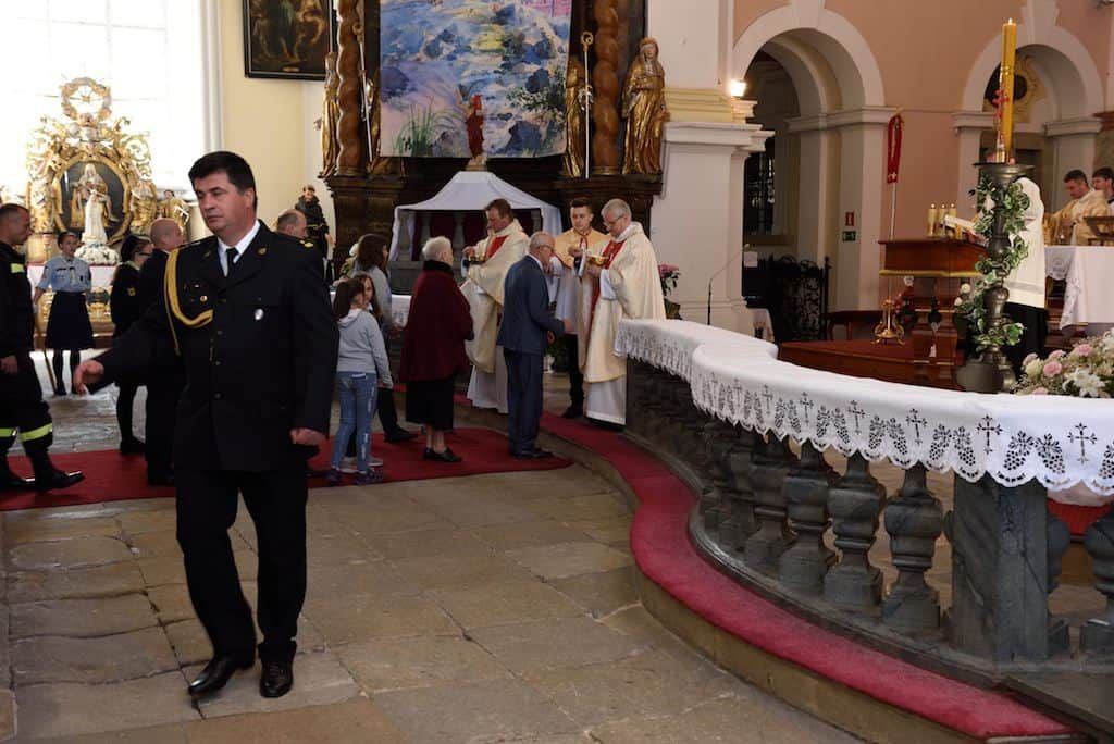 W niedzielę 6 maja w Lubomierzu strażacy OSP Gminy i Miasta Lubomierz obchodzili swoje patronalne święto. W uroczystości uczestniczył J.E. ks. bp dr Marek Mendyk – biskup pomocniczy diecezji legnickiej wraz z dyrektorem Wydziału Katechetycznego LKB ks. dr Jarosławem Kowalczykiem. Strażacka brać z OSP oczekiwała na Dostojnego Gościa na Placu Kościelnym. Delegacja Państwowej i Ochotniczej Straży Pożarnej poprowadziła Księdza Biskupa od plebanii do kościoła w szpalerze druhen i druhów ze wszystkich jednostek OSP Miasta i Gminy Lubomierz. Po powitaniu w kościele, strażacy poprosili Bpa Marka o sprawowanie Eucharystii w intencji strażaków OSP i ich rodzin. Wraz z Ks. Biskupem Najświętszą Ofiarę sprawował proboszcz parafii ks. kan. dr Erwin Jaworski oraz kapelan strażaków ks. Piotr Olszówka. Oprócz rodzin strażackich i parafian we Mszy św. udział wzięli przedstawiciele Komendy Powiatowej Państwowej Straży Pożarnej we Lwówku Śląskim oraz przedstawiciele władz samorządowych – z burmistrzem Lubomierza Wiesławem Ziółkowskim i radnym powiatu Markiem Chrabąszczem na czele. Obecna była również dyrektor Zespołu Szkół p. Joanna Paśko – Sikora, a także dyrektor Zespołu Szkolno – Przedszkolnego p. Marek Kozak