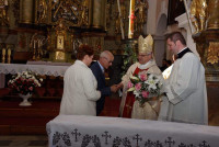 Na zakończenie Eucharystii strażacy podziękowali Księdzu Biskupowi wręczając podręczny sprzęt ochrony przeciwpożarowej z życzeniami, aby stanowił jedynie element dekoracji i nie musiał być używany zgodnie z jego przeznaczeniem. Również burmistrz Lubomierza podziękował Dostojnemu Gościowi za udział w miejsko – gminnych obchodach Dnia Strażaka. Słowa uznania skierował też do proboszcza parafii w Lubomierzu ks. Erwina Jaworskiego oraz do kapelana strażaków OSP ks. Piotra Olszówki, dziękując za owocną współpracę na wielu płaszczyznach życia lokalnej społeczności.