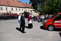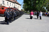 Dalsza część uroczystości miała miejsce na placu przykościelnym, gdzie Bp Marek poświęcił 3 lekkie wozy ratowniczo – gaśnicze dla jednostek OSP w Lubomierzu, Pasieczniku i Golejowie oraz nowy sprzęt strażacki. Wodą święconą pokropił także wszystkich strażaków. Ksiądz Biskup wspomniał również, że jego wujkowie byli druhami ochotnikami, a kiedy zawyła syrena, to ich matki i żony przygotowywały sprzęt strażacki, a babcia brała do ręki różaniec i modliła się za udających na akcję, prosząc Maryję o ich szczęśliwy powrót.