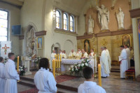 Homilię w dwóch językach wygłosił biskup legnicki Zbigniew Kiernikowski. Przypomniał w niej, że Eucharystia wychodzi z Tajemnicy Paschalnej. – Tajemnica zbawienia człowieka dokonuje się w jego życiu poprzez Boga. On zawarł tę tajemnicę w postaciach chleba i wina, w celebracji paschalnej, której nadał nowy sens. Te znaki to nie tylko obecność, ale i skuteczne działanie – mówił.