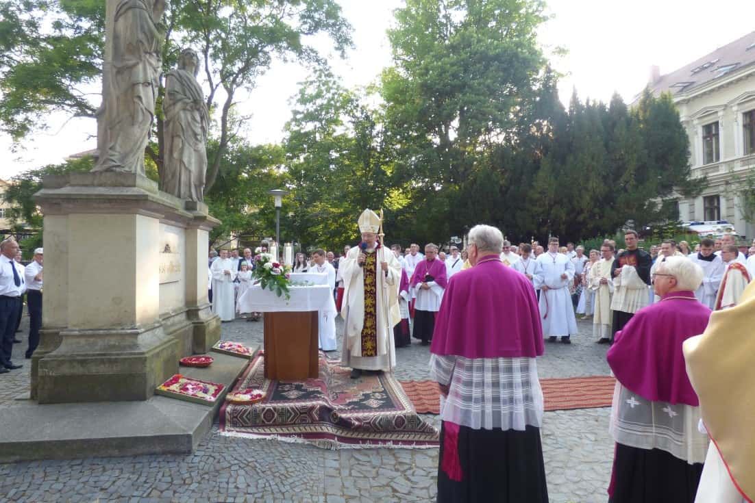 Mszy św. przewodniczył biskup Görlitz Wolfgang Ipolt. -Dziś cały Kościół raduje się, że Chrystus pozostawił nam sakrament, poprzez który codziennie może przebywać pośród nas. Obecny jest w Najświętszym Sakramencie, który ustanowił dla nas z miłości i ofiary. Chcemy dać świadectwo wiary wszystkim mieszkańcom Zgorzelca i Görlitz, a także przez udział w procesji eucharystycznej wypraszać dla wszystkich Bożego błogosławieństwa – mówił bp Ipolt.