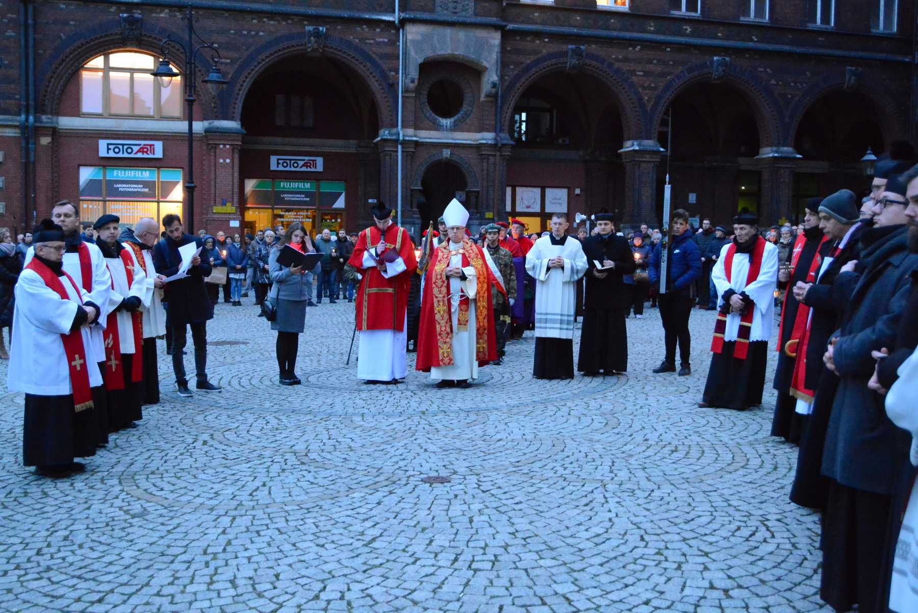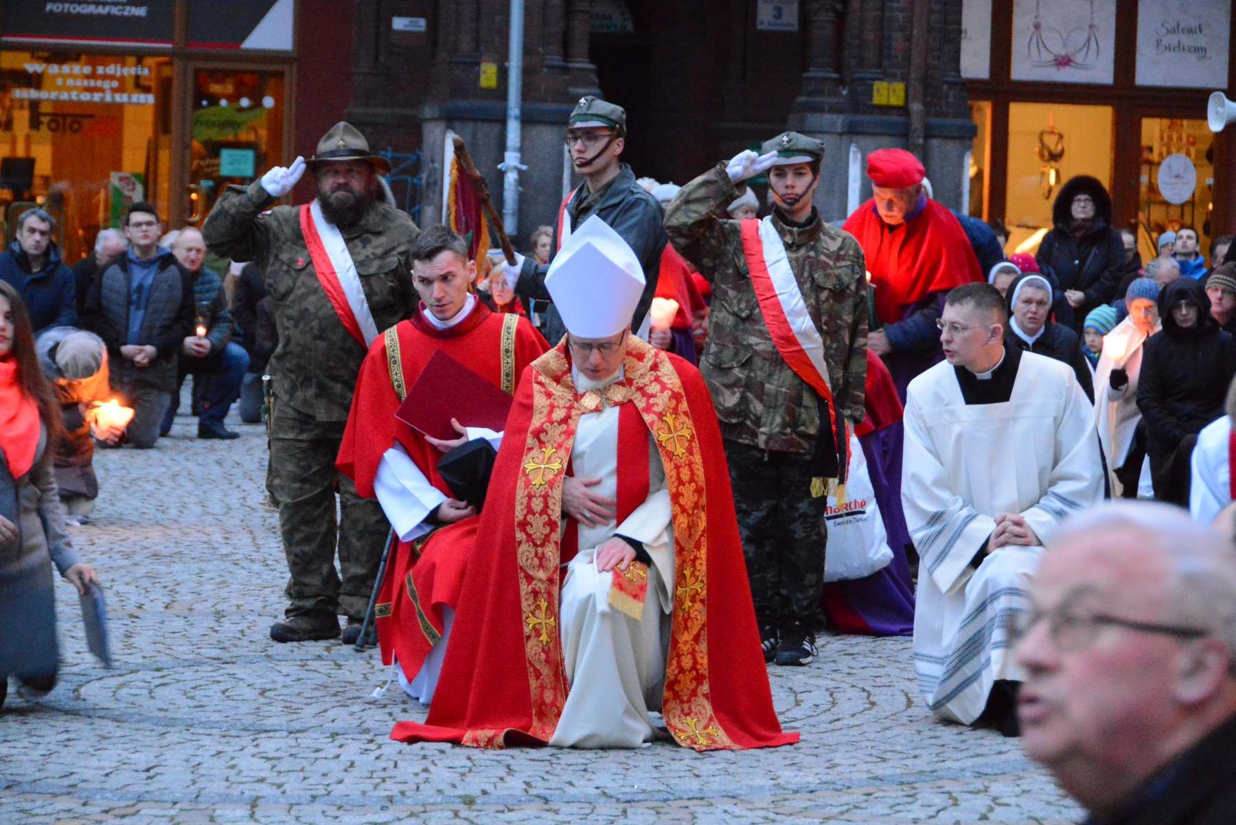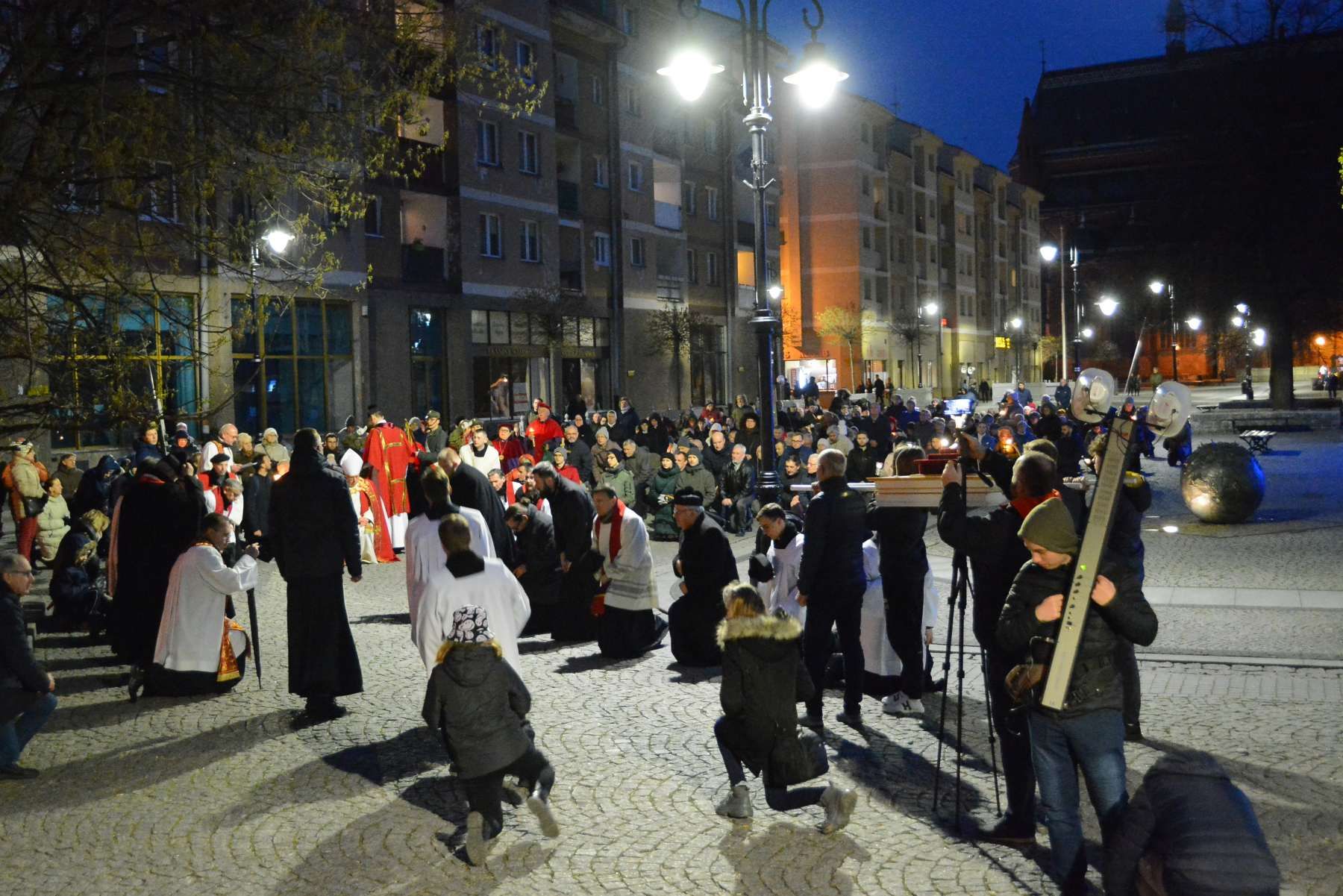 Na ulicach Legnicy, w ramach duchowego przygotowania do Triduum Paschalnego, odprawione zostało nabożeństwo Drogi Krzyżowej. Przewodniczył mu biskup legnicki Andrzej Siemieniewski. Nabożeństwo rozpoczęło się w katedrze o g. 19,30 i przeszło przez Rynek, ul. Chojnowską, Gwarną, na skwer Orląt Lwowskich. Tegoroczna Droga Krzyżowa była wyjątkowa. Towarzyszyły jej relikwie Męki Pańskiej z sanktuarium w Tyńcu Legnickim. Odprawiana była w j. polskim i ukraińskim. Uczestniczyli w niej Polacy i Ukraińcy. Nabożeństwu towarzyszyła modlitwa o pokój w Ukrainie i na świecie.
