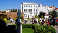 W sobotnie przedpołudnie po zakończonej Eucharystii oraz modlitwie różańcowej przed Najświętszym Sakramentem w katedrze legnickiej grupa wiernych udała się wraz z Księdzem Prałatem Robertem Kristmanem przed dom parafialny, gdzie została umieszczona na cokole figura Królowej Pokoju.