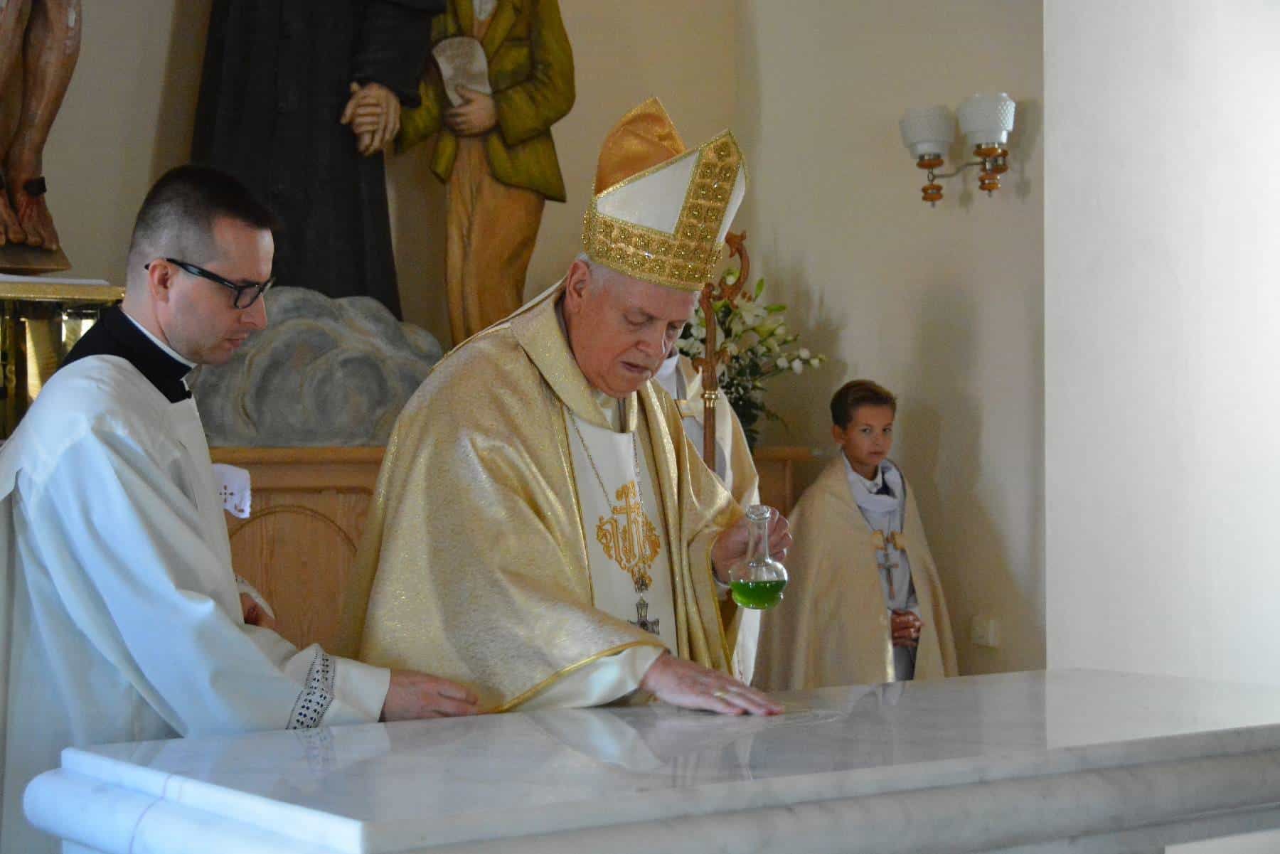 - Ten kościół wybudowany ludzkim wysiłkiem ma służyć temu, by ci, którzy tutaj przychodzą stawali się świątynią Boga – powiedział biskup legnicki Zbigniew Kiernikowski podczas konsekracji kościoła.
