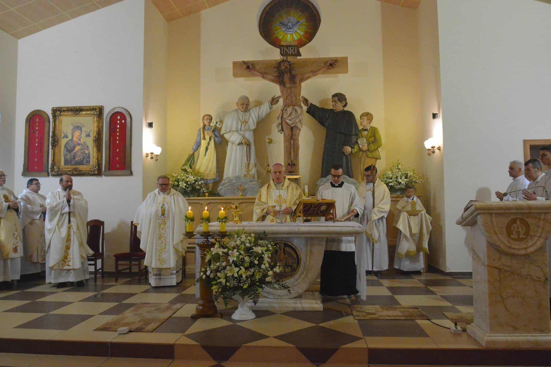 Uroczystej konsekracji przewodniczył biskup legnicki Zbigniew Kiernikowski. Obecni byli także księża z dekanatu Lubin Zachód, siostry zakonne, prezydent Lubina Robert Raczyński oraz ks. Jarosław Pizoń - inspektor Inspektorii Wrocławskiej Księży Salezjanów. Nie mogło zabraknąć rzeszy wiernych, którzy wspólną modlitwą uczcili tej ważny dla ich wspólnoty dzień. W homilii mszalnej Biskup legnicki podkreślił, że kościół to miejsce oddawania kultu nie tylko w zewnętrznych znakach, w liturgii czy obrzędach, ale przede wszystkim chodzi o to, by ci, którzy będą tu przychodzić, słuchając Słowa Bożego, korzystając z sakramentów, stawali się żywym obrazem Boga.