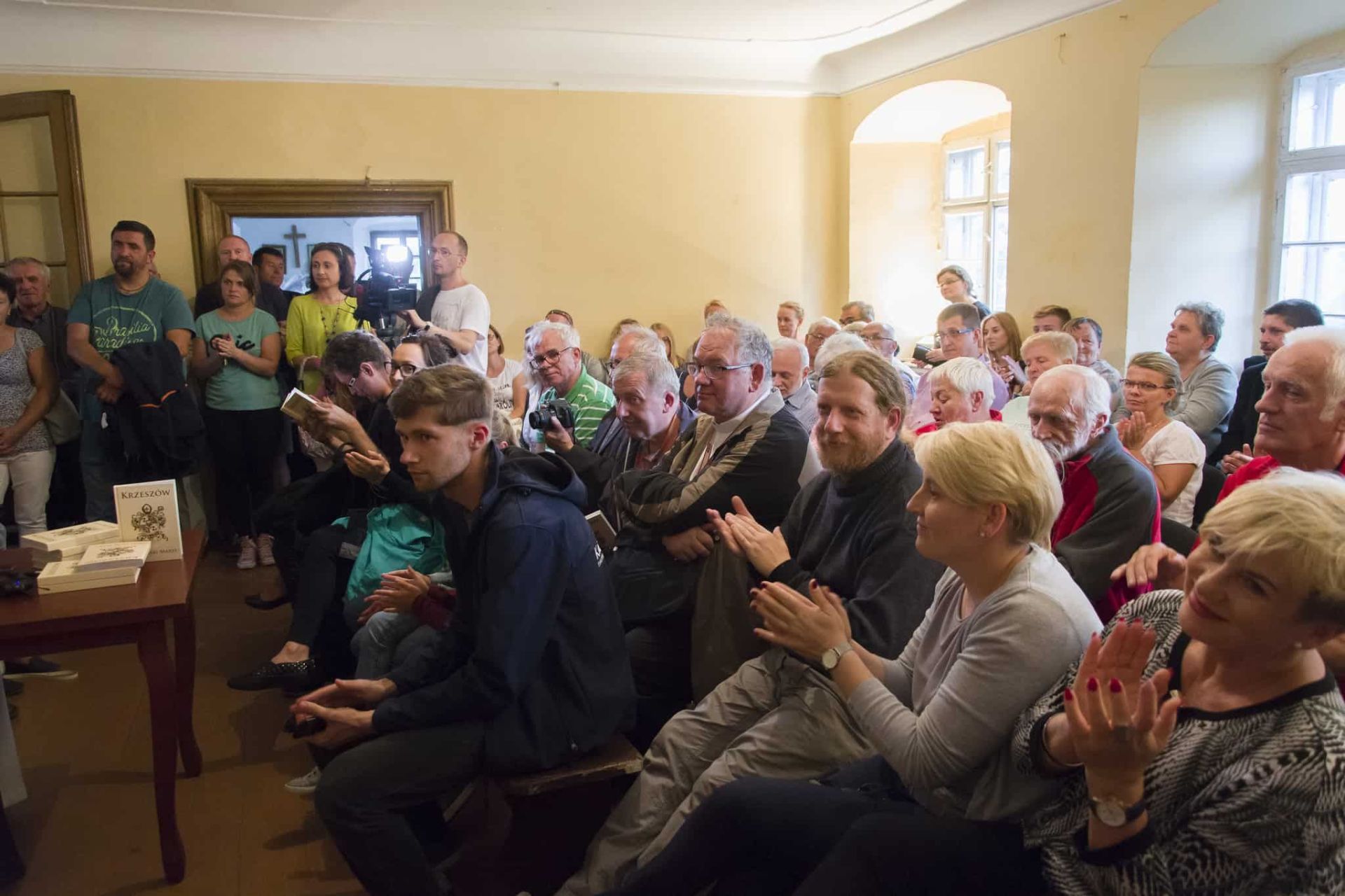 Premiera Książki "Krzeszów - Dom Łaski Maryi" Krystiana Michalika nieco przerosła nasze oczekiwania. Sala spotkania okazała się zbyt mała, uczestnicy zajmowali miejsca na schodach oraz w bocznych pomieszczeniach Starej Plebani w Krzeszówku.