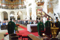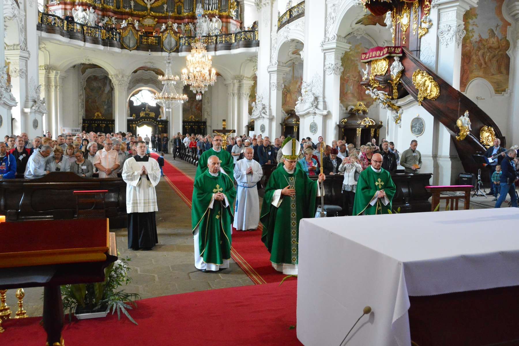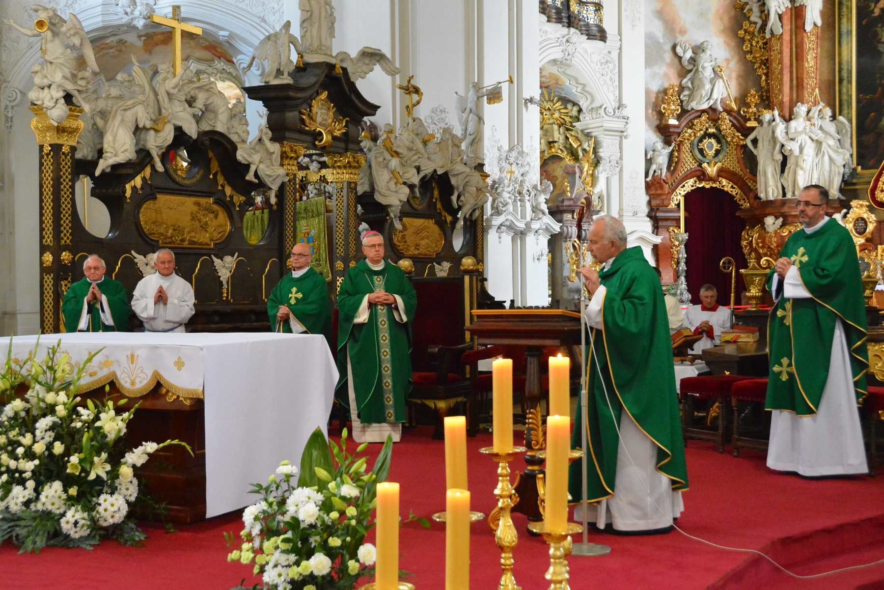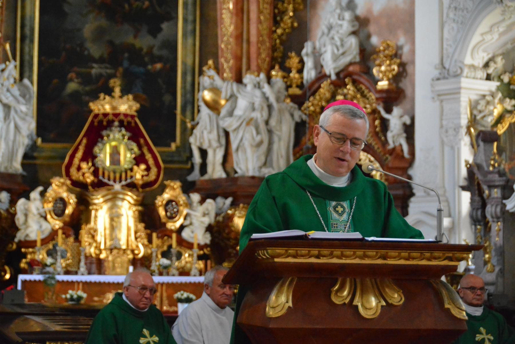W południe Mszy św. w bazylice krzeszowskiej przewodniczył biskup legnicki Andrzej Siemieniewski wraz z kapłanami, wśród których był także opiekun duszpasterstwa trzeźwości ks. Bronisław Piśnicki.