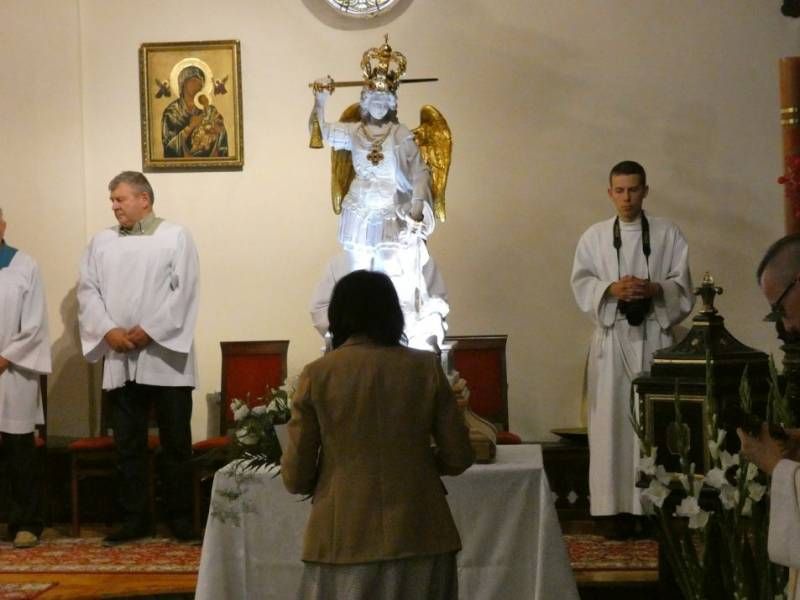 - Witamy cię w progach naszej parafialnej świątyni. Przybywasz do nas w kopii figury z groty objawień w Gargano, miejsca które uświęcasz swoją obecnością od V w. Czujemy się zaszczyceni ta niezwykła wizytą, a jednocześnie uradowani, bo liczymy że swą obecnością napełnisz nasze serca niebiańską radością. Św. Michale otaczaj opieką nasze rodziny. Wspieraj nas w pokonywaniu trudów codziennego życia. Osłaniaj chorych i samotnych. Chroń dzieci od złego, młodzież – od niewiary, a nam pomóż trwać w miłości i wierności. Spraw, byśmy pełni mocy i wiary, z ufnością kroczyli po ścieżkach Pana, głosząc Jego chwałę. Bóg ponad wszystko! – Któż jak Bóg! – mówiła przedstawicielka parafii podczas wygłoszonego powitania.