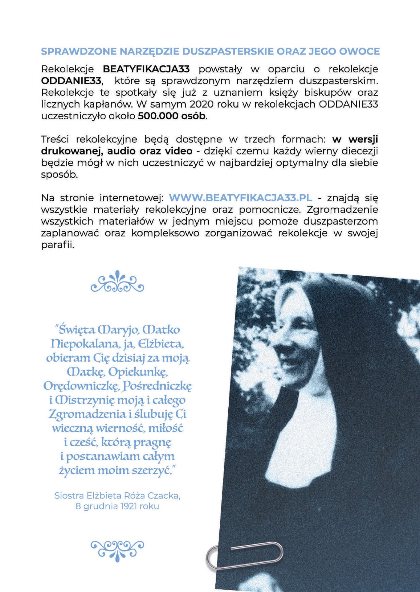 Wszystkie materiały będą dostępne na stronie: www.beatyfikacja33.pl