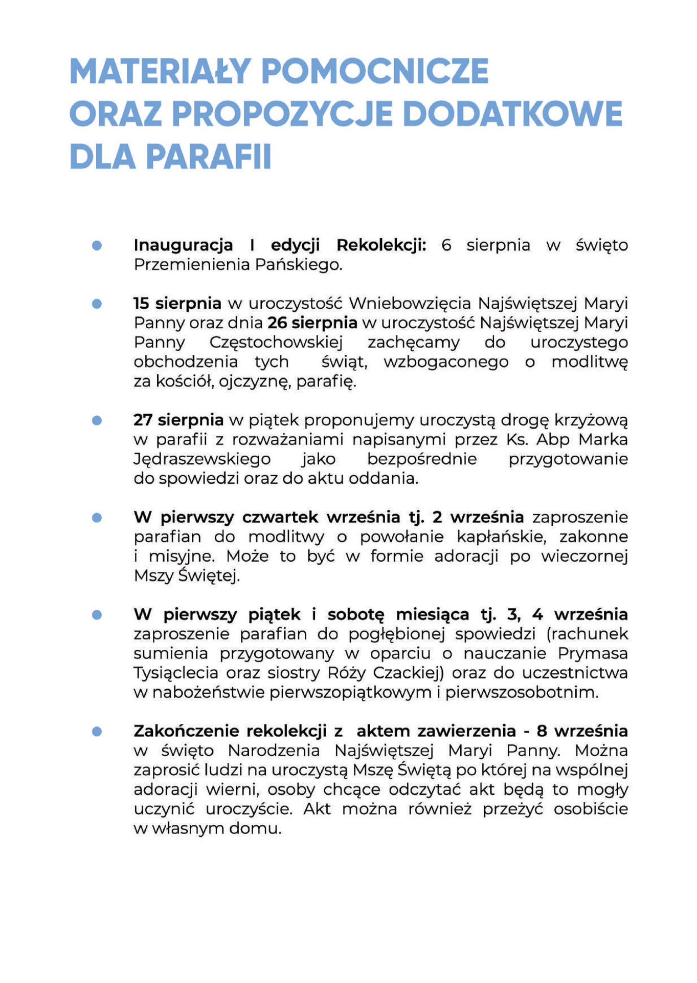 W najbliższym czasie dotrą do wszystkich Przewielebnych Księży Proboszczów materiały promujące w/w rekolekcje.