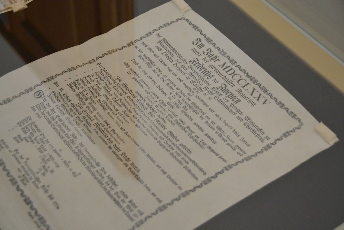 Kolejny wkład do tuby dodano w 1823 r. Dołożono wtedy do niej następny dokument oraz 10 monet króla Prus Fryderyka Wilhelma III. Ogólnie w kapsule znalazło się pięć złotych monet, 26 srebrnych i cztery miedziane. Najwcześniejszy depozyt odnaleziony w kapsule czasu pochodzi sprzed 375 lat. Tym samym jest to najstarsze tego typu znalezisko nie tylko w Polsce ale także na całym świecie.