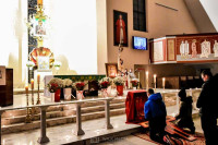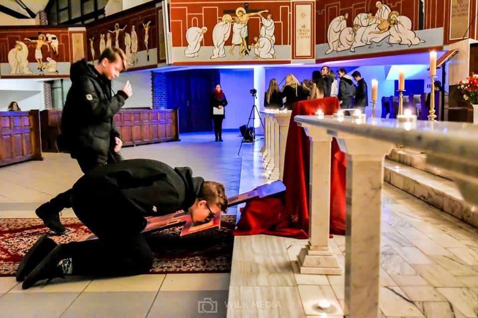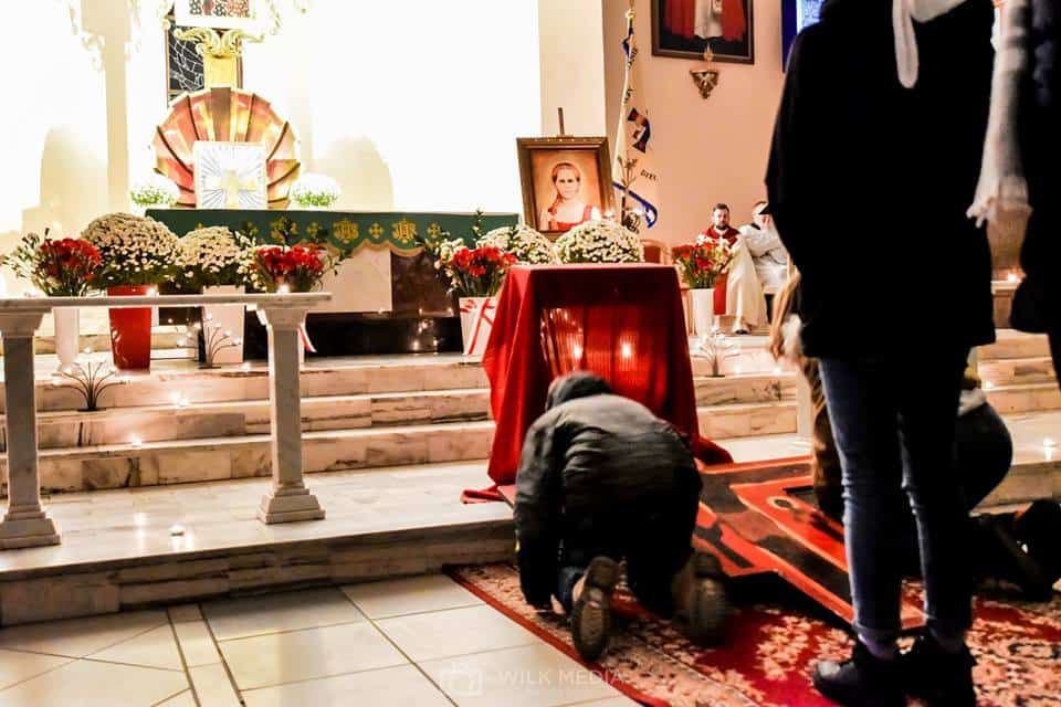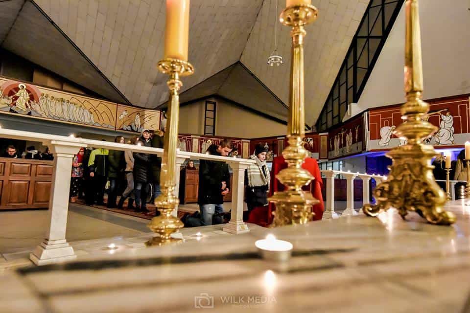Tuż po Mszy adorując krzyż na nabożeństwie w duchu Taize dziękowaliśmy za dar życia Karoliny. Podczas tych uroczystości towarzyszyły nam jej relikwie oraz sztandar Katolickiego Stowarzyszenia Młodzieży. Dziękujemy wszystkim, którzy zechcieli włączyć się w obchody naszego święta, a szczególne podziękowania kierujemy do młodzieży, która poświęciła swój czas i przygotowała nabożeństwo.