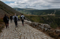 Stypendyści Fundacji Dzieło Nowego Tysiąclecia od poniedziałku goszczą w Legnicy. 600 osób z całej Polski przyjechało do naszego miasta na tygodniowy obóz wakacyjny. Studenci zwiedzają nie tylko Legnicę, ale mają okazję zobaczyć najpiękniejsze zakątki Diecezji Legnickiej. W środę wybrali się do Karpacza i ruszyli na Śnieżkę. Mimo, że na najwyższym szczycie Karkonoszy temperatura odczuwalna wynosiła około 0 stopni Celsjusza, to nie zniechęciło studentów do licznych sesji fotograficznych, dokumentujących ich osiągnięcia.