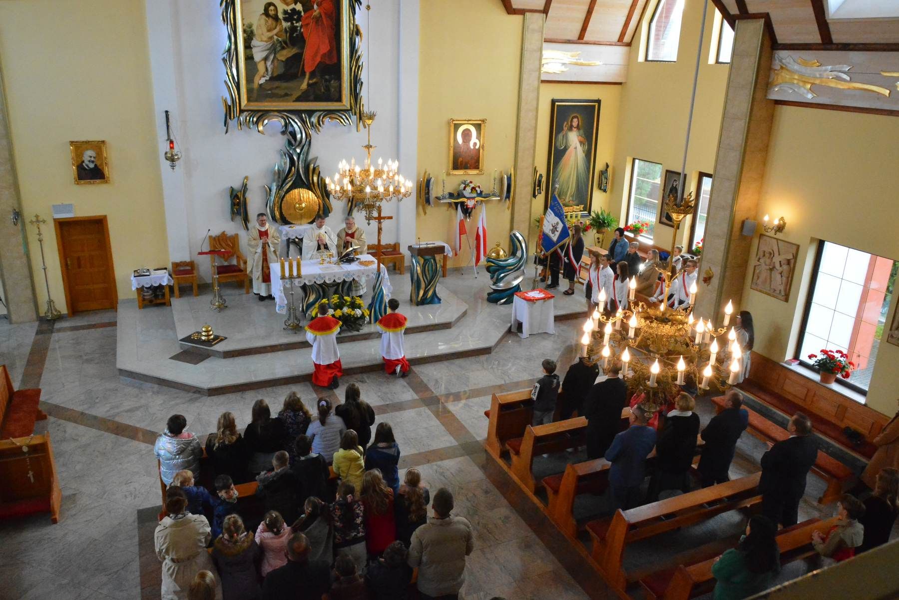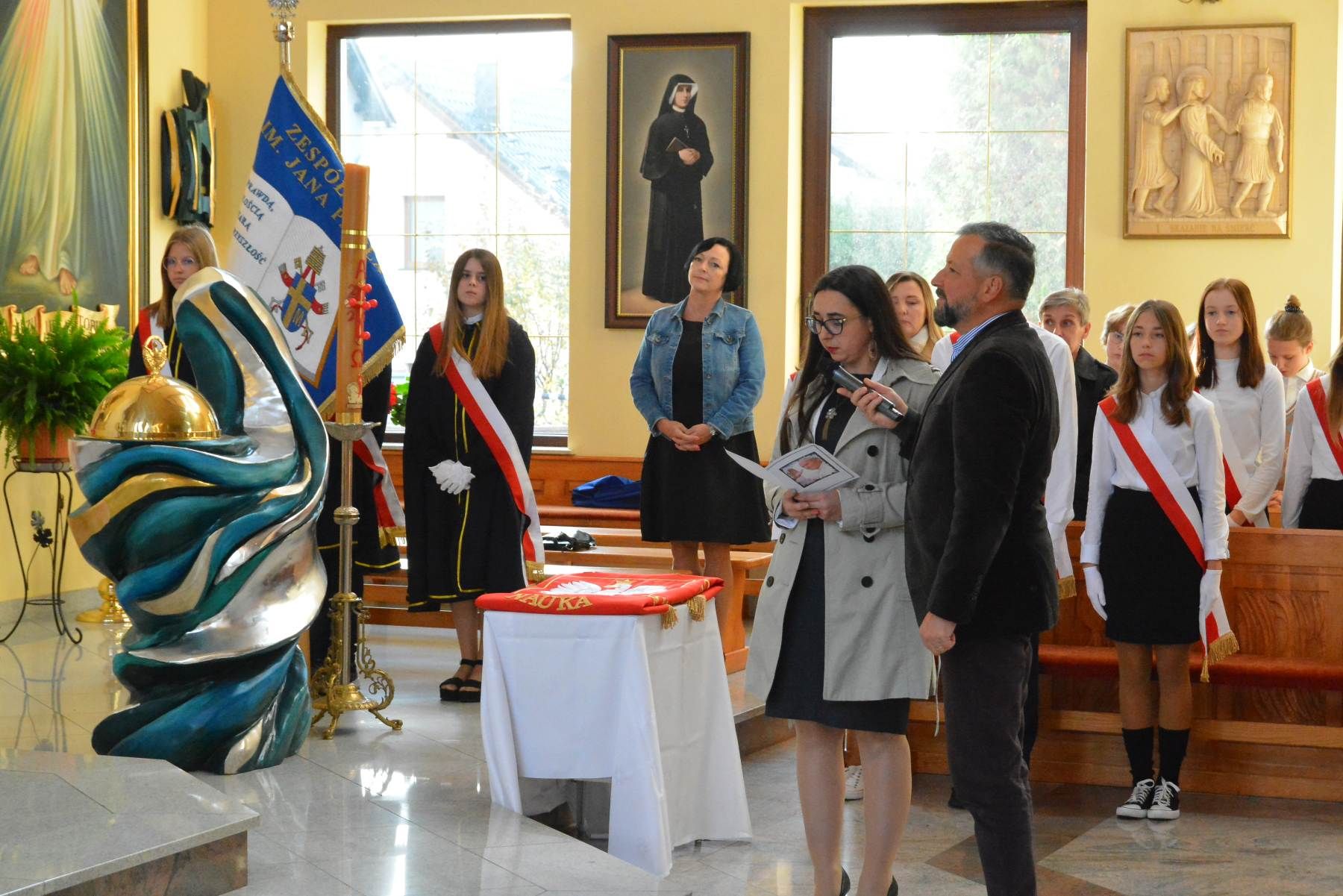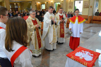 Święto szkoły rozpoczęło się w kościele św. Jana Chrzciciela, gdzie ks. Jarosław Kowalczyk przewodniczył Mszy św. wraz z ks. Ludwikiem Maciakiem - proboszczem i ks. Mariuszem Habiniakiem - absolwentem szkoły. Podczas Eucharystii został poświęcony nowy sztandar szkoły.