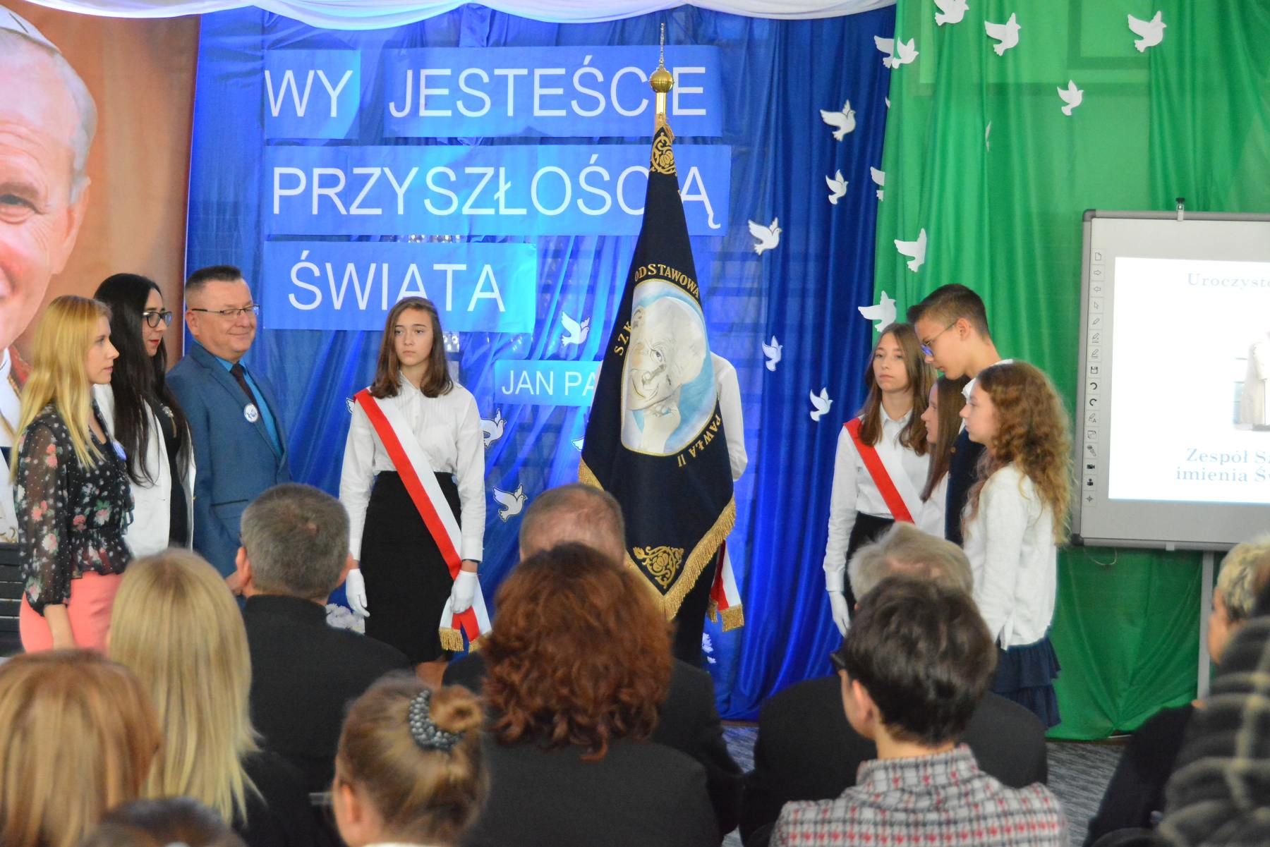 Na zakończenie dyrektor szkoły złożył podziękowanie wszystkim, którzy włączyli się w przygotowanie i przeprowadzenie tej uroczystości. Warto podkreślić, że w uroczystości wzięła udział delegacja szkoły im. św. Jana Pawła II z Osiecznicy wraz z pocztem sztandarowym.