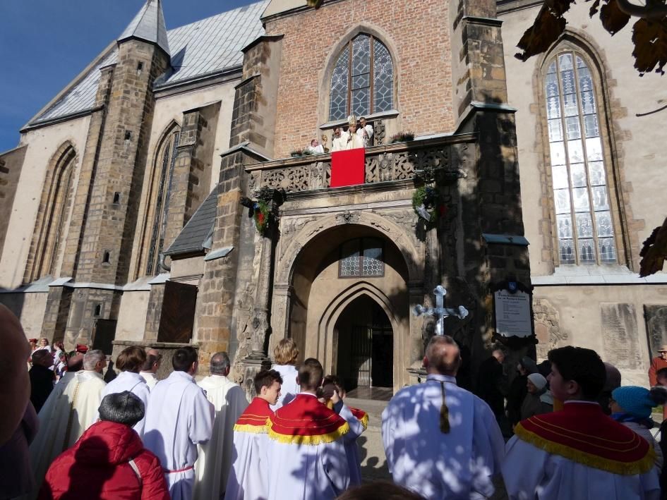 Następna, której przewodniczył biskup legnicki Andrzej Siemieniewski, a homilię wygłosił ks. prof. Włodzimierz Wołyniec rektor WSD we Wrocławiu, sprawowana była z ich udziałem, w intencji mieszkańców i władz Jawora. Po jej zakończeniu, Biskup legnicki udzielił z loggii kościoła błogosławieństwa relikwiami św. Marcina. Po przyjęciu błogosławieństwa i poczęstunku „Rogalami św. Marcina”, uczestnicy przeszli za „Św. Marcinem” ulicami miasta, na dalszą część wydarzeń w Rynku, niosąc flagę biało-czerwoną.