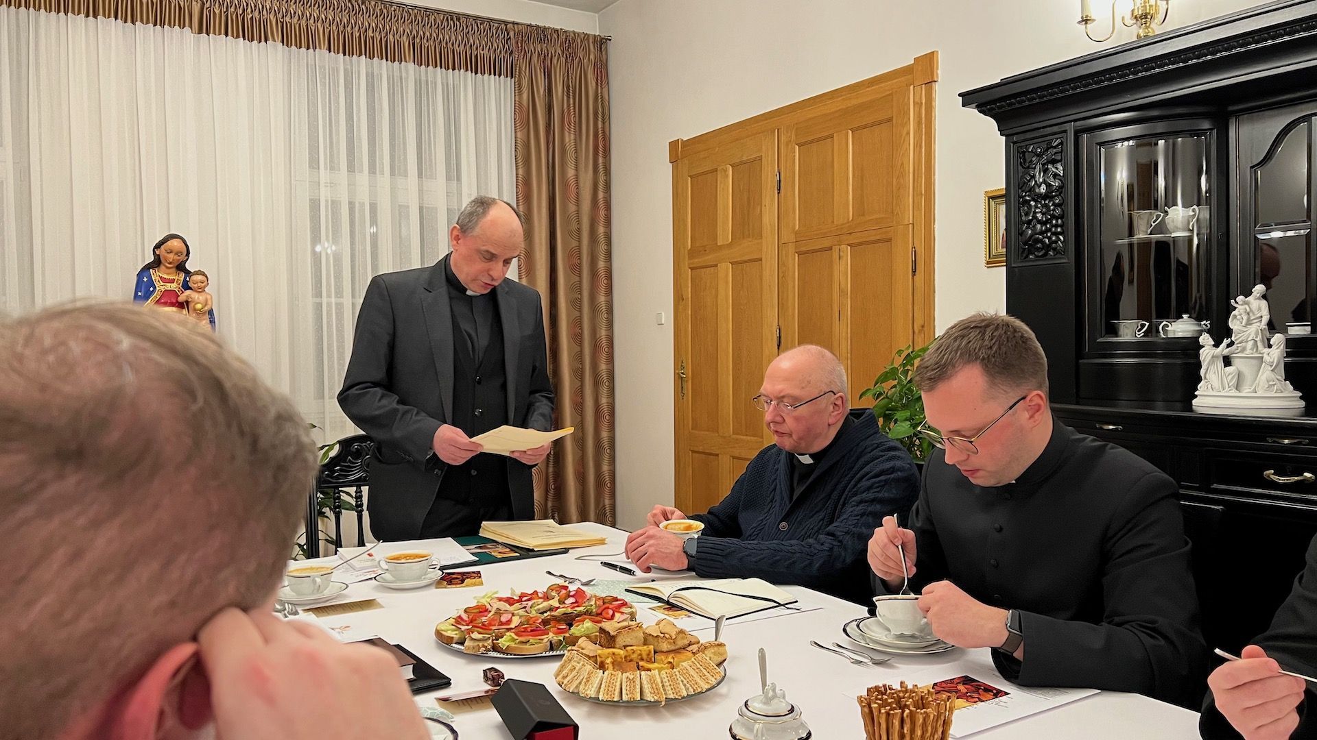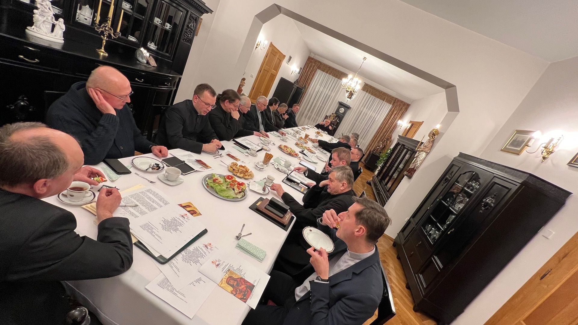 We wtorkowy wieczór, 7 grudnia, w domu Biskupa Legnickiego zebrali się księża pracujących w instytucjach diecezjalnych tj. Legnicka Kuria Biskupia, Wyższe Seminarium Duchowne, Sąd Kościelny, Radio Plus Legnica, by rozpocząć serię spotkań synodalnych zaplanowanych na etapie diecezjalnym w przygotowaniu XVI Zgromadzenia Synodu Biskupów 2023.