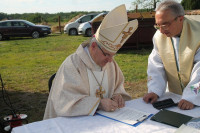 W VI Niedzielę Wielkanocną bp Marek poświęcił kamień węgielny pod budowę świątyni w Szczytnikach.