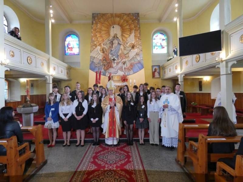 Podczas Mszy św. Biskup legnicki udzielił też sakramentu Bierzmowania młodzieży z dwóch parafii. O udzielenie sakramentu prosili rodzice kandydatów, a przedstawili ich proboszczowie tych parafii; ks. Krzysztof Żądło z parafii w Starym Węglińcu i ks. Krzysztof Sikora z parafii w Czerwonej Wodzie.
