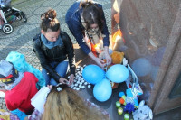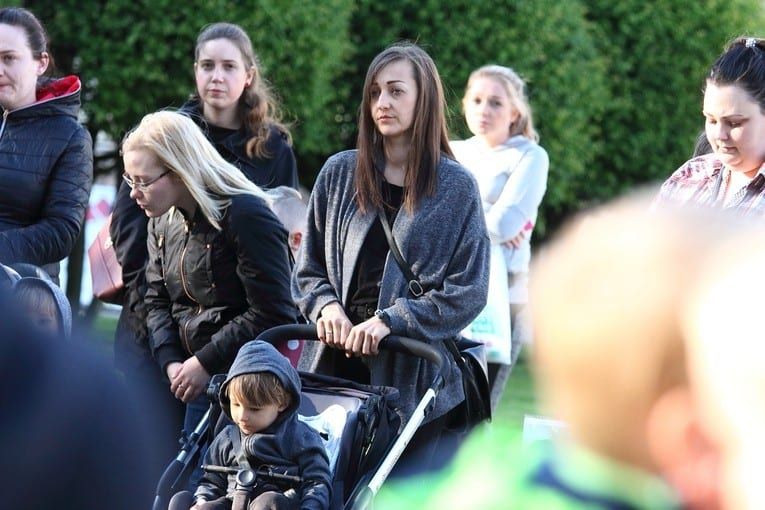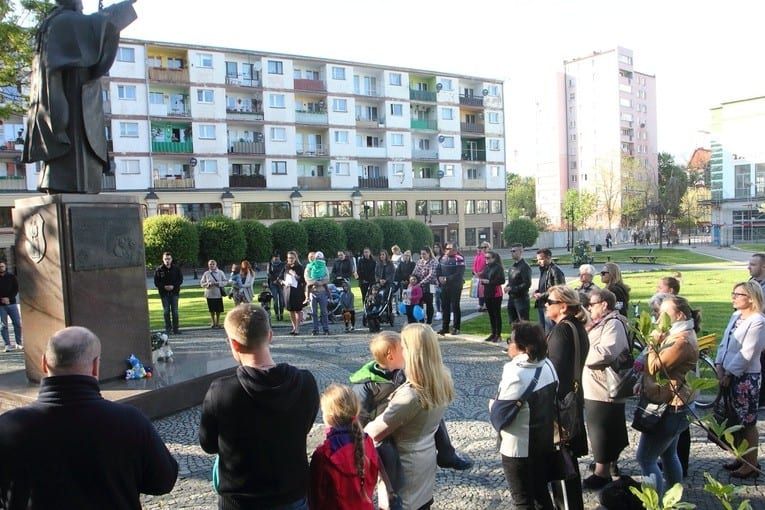 Wśród kilkudziesięciu osób otaczających pomnik św. Jana Pawła II było kilkanaście osób z dziećmi, nawet takimi w wózkach. Wiele maluchów zostawiło swoje zabawki przy pomniku papieża Polaka.