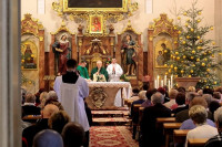 - Takie spotkania są tradycją naszego domu. Uczestnicy przyjechali praktycznie z całego obszaru naszej diecezji. Również z tych parafii, gdzie jest oficjalnie nie ma zawiązanych kół. Są rodzice alumnów i kapłanów. Wiemy, że oni wszyscy codziennie troszczą się o naszą wspólnotę. Troszczą się duchowo i materialnie. To spotkanie ma zazwyczaj dwie części. Pierwsza to liturgia Eucharystii, druga to wspólne kolędowanie. Ta druga część jest przeplatana rozważaniami. W tym roku przeżywamy 100. rocznicę urodzin św. Jana Pawła II i 20. rocznicę jego pielgrzymki do Ziemi Świętej. Dlatego w naszych rozważaniach będziemy słuchali słów homilii, którą św. Jan Paweł II wygłosił podczas tamtej pielgrzymki, podczas Eucharystii na placu przez bazyliką w Betlejem - mówił ks. Piotr Kot.
