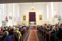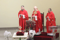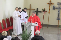Liturgii odpustowej przewodniczył ks. Tomasz Ślazyk z Lubina a przy ołtarzu towarzyszyli mu ks. Krzysztof Czadowski z Jawora, ks. Patryk Zarzeczny z Prochowic oraz ks. Wiesław Złotek, proboszcz z miejsca. Obecność tylu kapłanów związana była z pieszymi pielgrzymkami-drogami krzyżowymi organizowanymi przez Wspólnotę Śladami Maryi. Pątnicy dotarli tutaj po wielokilometrowych pielgrzymkach z Lubina, Prochowic, Jawora oraz Koskowic.