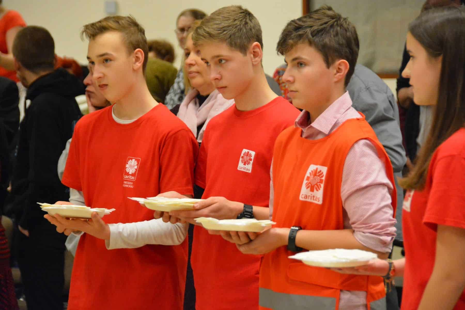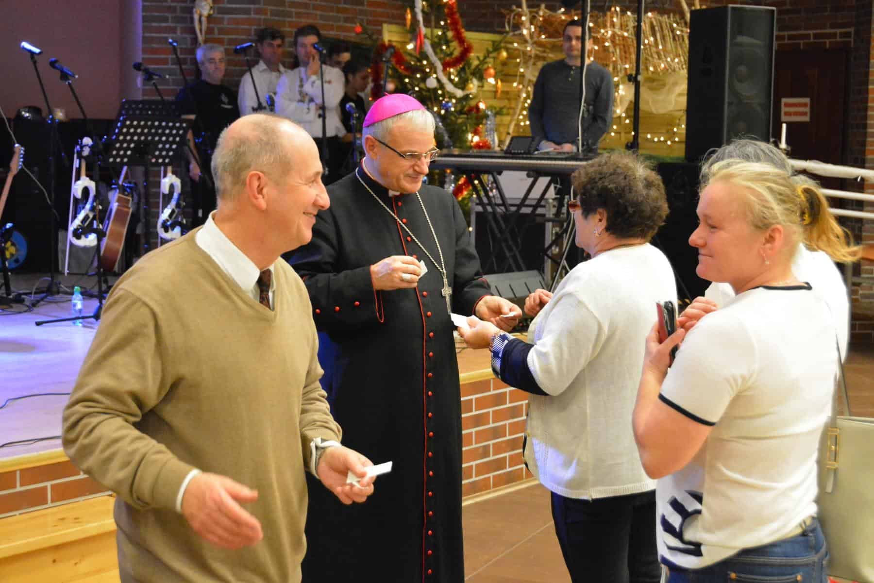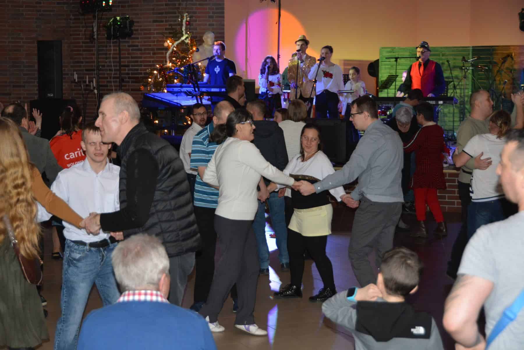 Ponad 200 osób bawiło się na balu, który odbył się w piątek w Centrum Spotkań im. Jana Pawła II w Legnicy. Osoby niepełnosprawne i ich przyjaciele z radością czekają na to doroczne wydarzenie gromadzące wielką liczbę uczestników. Spotkanie rozpoczęło się od Mszy św. w kościele Matki Bożej Królowej Polski, której przewodniczył bp Marek Mendyk. Przy ołtarzu stanęli również księża z legnickiej Caritas - Robert Serafin i Marcin Uryga. Po wspólnej modlitwie odbył się koncert kolęd w wykonaniu zespołu Pastuszki z Gogołowic. Kolejnym momentem było łamanie się opłatkiem i składanie życzeń. Po tej części rozpoczął się bal, na zakończenie którego odbył się pokaz sztucznych ogni.