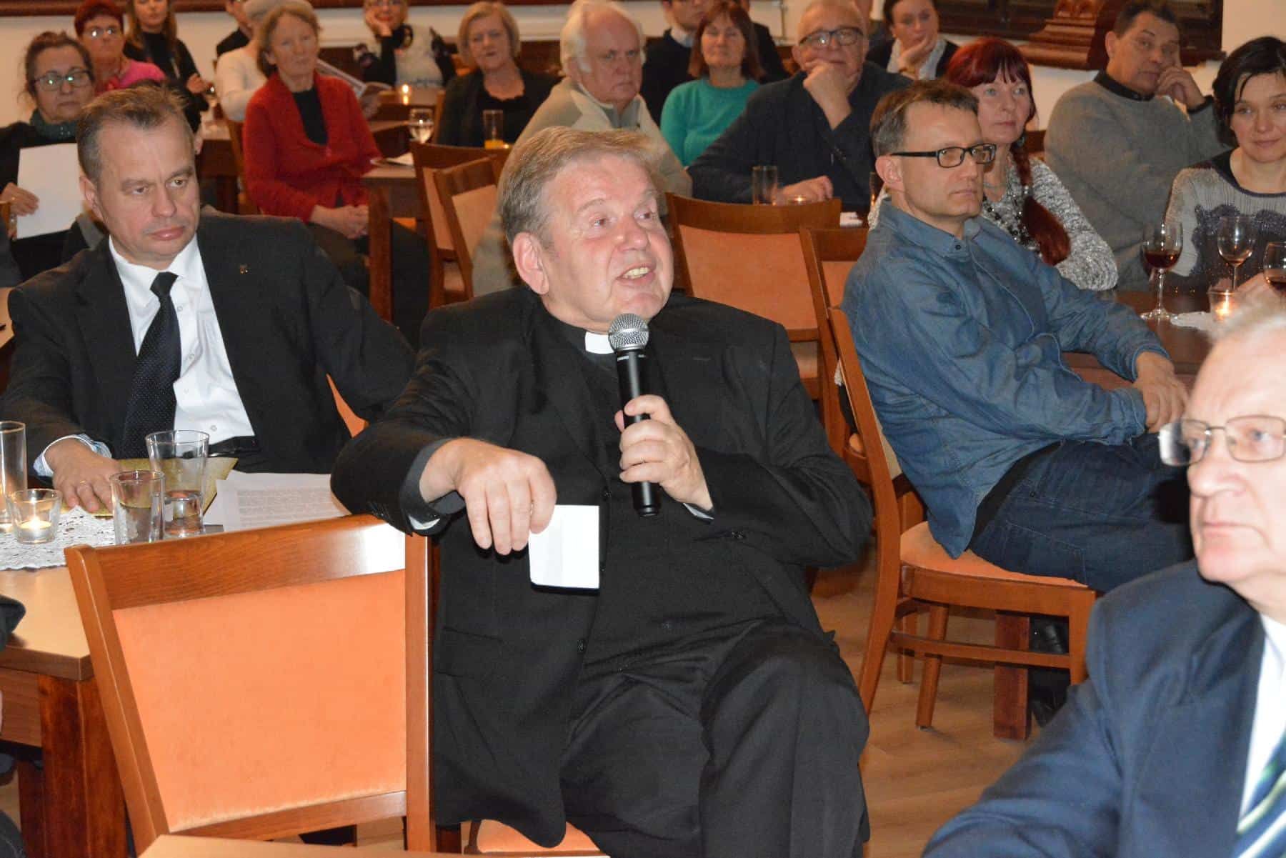 We wtorek 27 listopada w Miejskiej Bibliotece Publicznej w Legnicy odbyło się spotkanie, podczas którego wspominano zmarłych Legniczan, którzy odeszli w latach 2017-2018 i zapisali się w historii miasta, i w pamięci jego mieszkańców. Pomysłodawcą tych wyjątkowych Zaduszek pt. „Umarli. Znajomi. Kochani” była prezes Towarzystwa Miłośników Legnicy Antonina Trawnik oraz dyrektor LBP Anna Gątowska. W sumie wspomniano 29 postaci, które miały duży wpływ na życie miasta i regionu. Wśród duchownych pojawiły się postaci pierwszego biskupa legnickiego Tadeusza Rybaka, ks. Tadeusza Kisińskiego, ks. Aleksandra Stankiewicza i ks. Czesława Mazura. Zmarłych kapłanów wspominali ks. Józef Lisowski, kanclerz Legnickiej Kurii Biskupiej oraz ks. Władysław Jóźków, emerytowany proboszcz parafii św. Trójcy w Legnicy. Była to niezwykle wzruszająca historia Legnicy zapisana w życiorysach ludzi, którzy na tym terenie żyli, pracowali i tworzyli, zostawiając dla potomnych część dorobku swojego życia. Wspomnienia przeplatane były wierszami, które prezentował Jan Hila, a które były nastrojowym dodatkiem tego wieczoru.