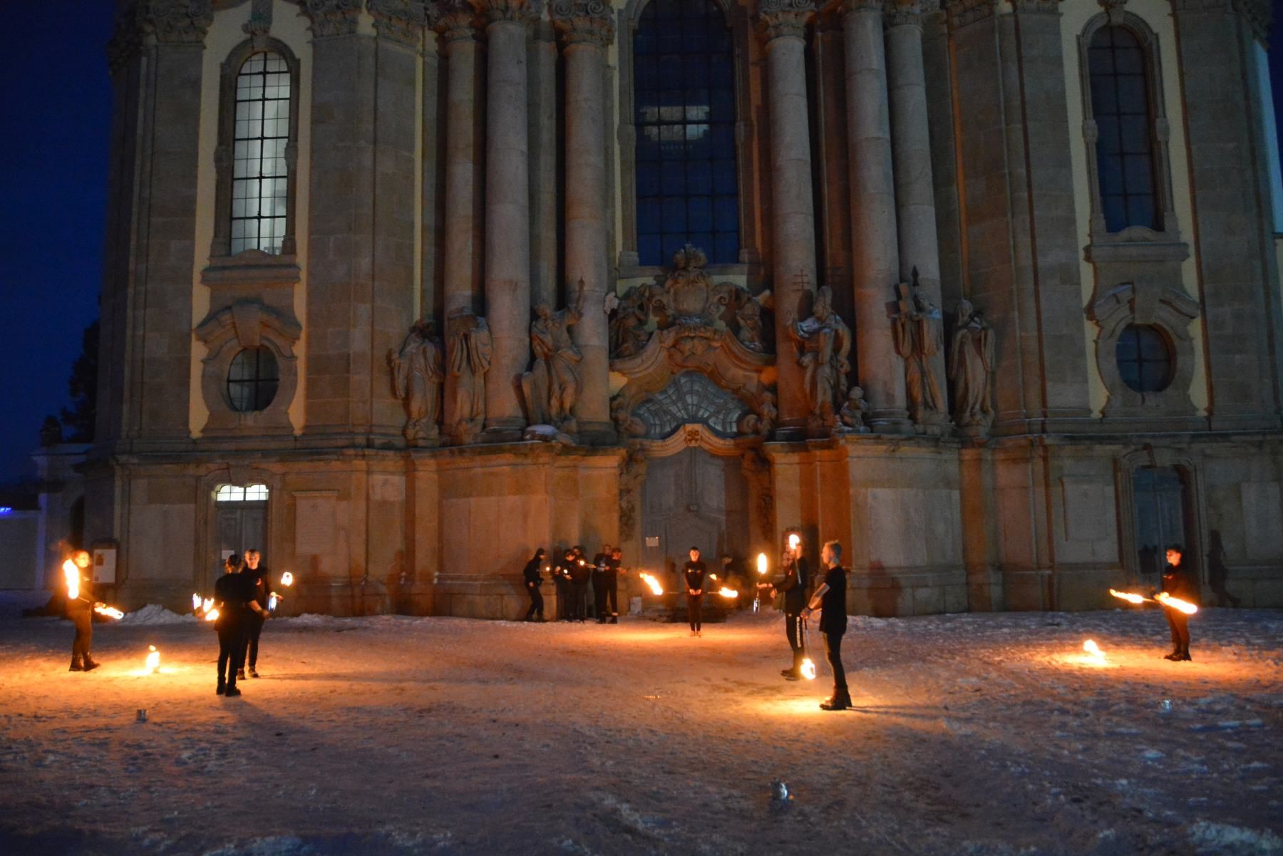 Obraz można było nawiedzić w zakrystii, w miejscu jego odnalezienia. Wieczorem, o g. 16,30 grupa młodzieży ze szkolnego Teatru Ognia Fire Mime z Krzyżowic zaprezentował niezwykły spektakl światła.