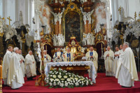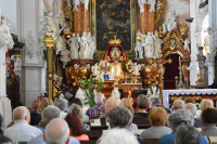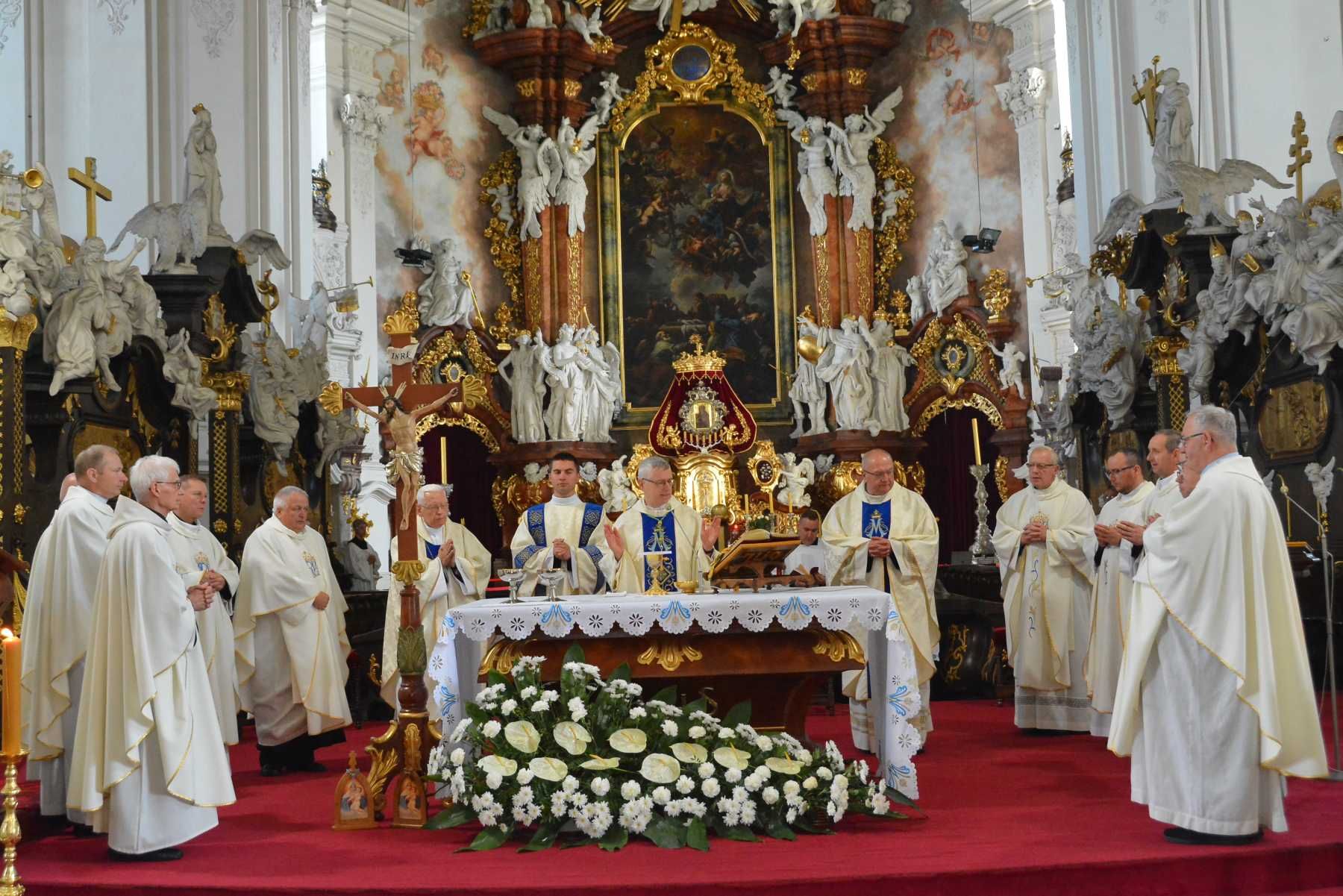 Centralnym momentem spotkania była Eucharystia, której przewodniczył biskup legnicki Andrzej Siemieniewski. Obecny był także bp senior Stefan Cichy oraz księża, którzy przyjechali z rodzinami ze swoich parafii. Podczas Eucharystii wystąpił także chór dziecięco-młodzieżowy Cantabile z Polkowic pod dyrekcją Joanny Kący. Na zakończenie mszy św., przez obrazem Matki Bożej Łaskawej, bp Andrzej zawierzył rodziny diecezji legnickiej Niepokalanemu Sercu Maryi.